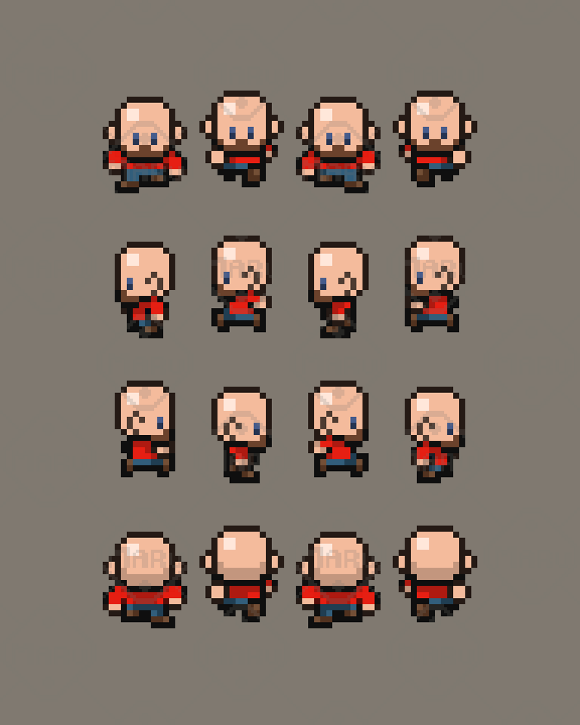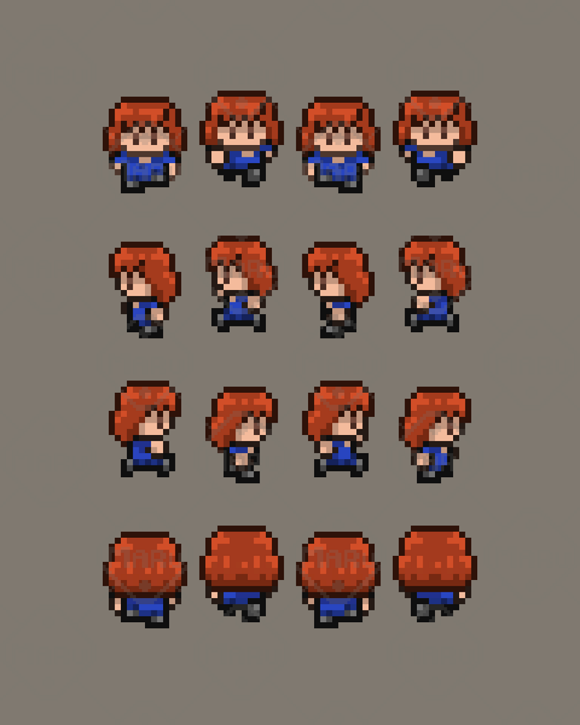 Features 16x16 top‑down pixel art 3 modern NPCs Walk animations included Consistent style and proportions Ideal for quests, cutscenes, and world‑building Clean, cohesive palette for professional results PNG format, ready to import