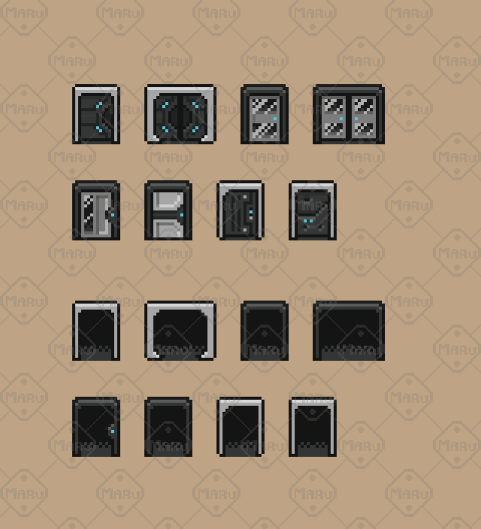 A modular set of 16x16 sci‑fi pixel doors for top‑down games. Includes multiple door types in open and closed states, perfect for bases, labs, colonies, ships and futuristic environments. Ideal for RPG, RTS, survival, exploration and sci‑fi adventure projects. Clean, readable pixel art designed for easy integration in any engine, including Unity, Godot, GameMaker and custom frameworks. Great for indie developers, prototypes and commercial projects.