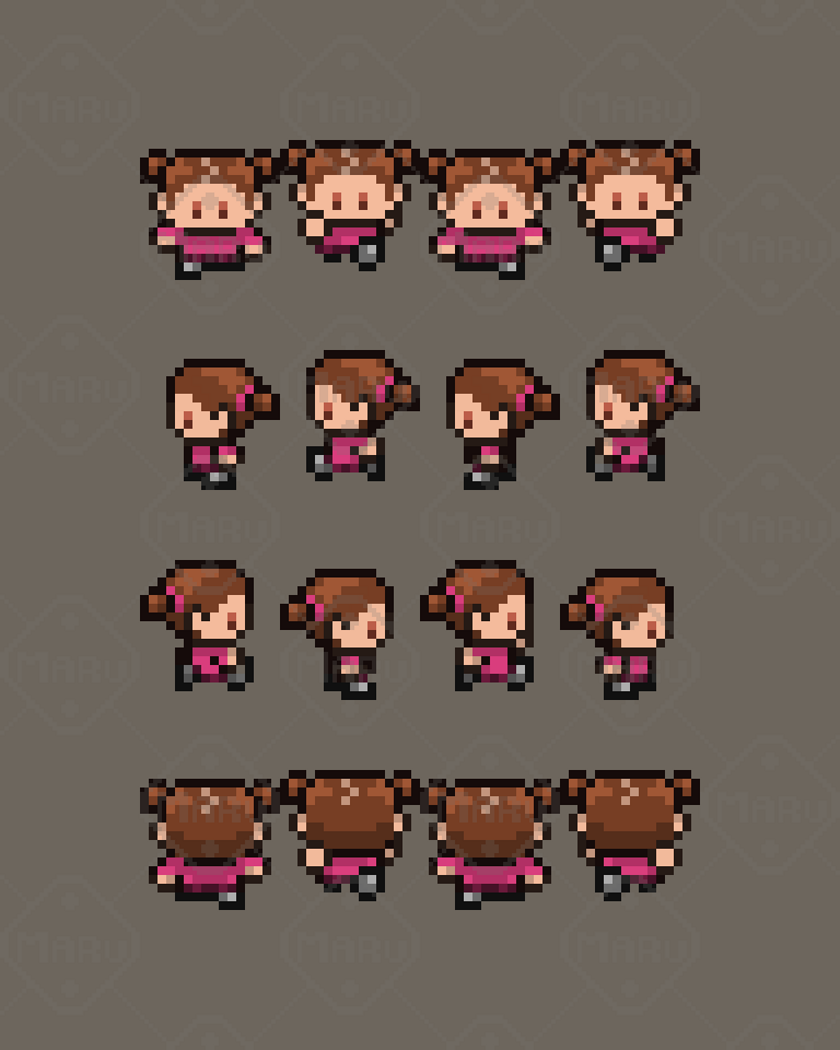 Features 16x16 top‑down pixel art Three female characters: child, adult, elder Consistent style and proportions Ideal for NPCs, story events, cutscenes, and world‑building Clean, cohesive palette for professional results PNG format, ready to import