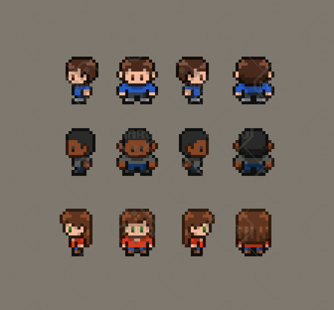 Enhance your 2D game with this 16x16 top‑down pixel art character pack, featuring 3 unique NPCs complete with walk animations. Each sprite is crafted with clean readability, consistent proportions, and a cohesive palette, making the pack ideal for RPGs, simulation games, narrative adventures, and modern or classic settings.