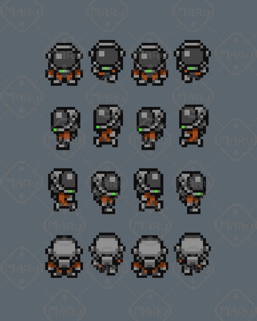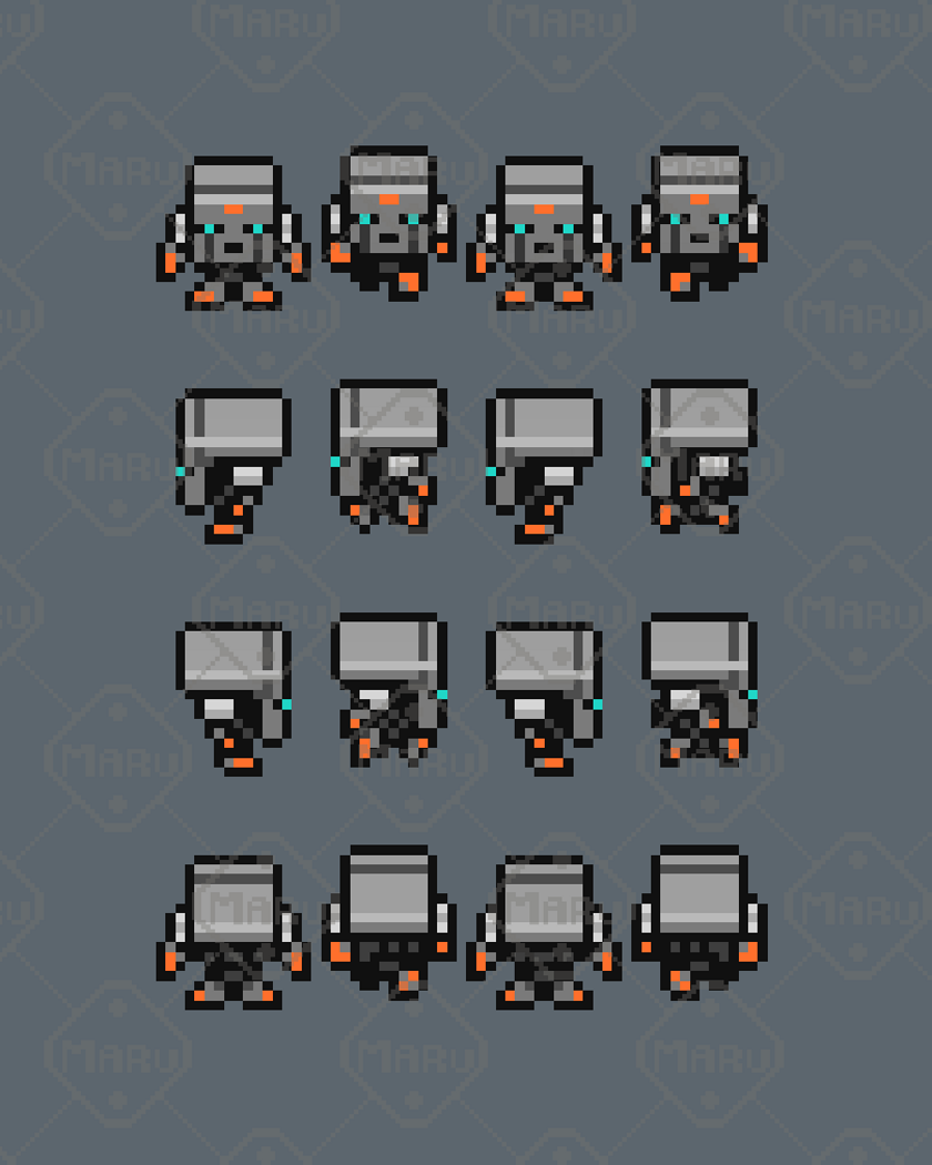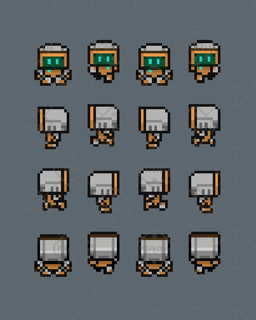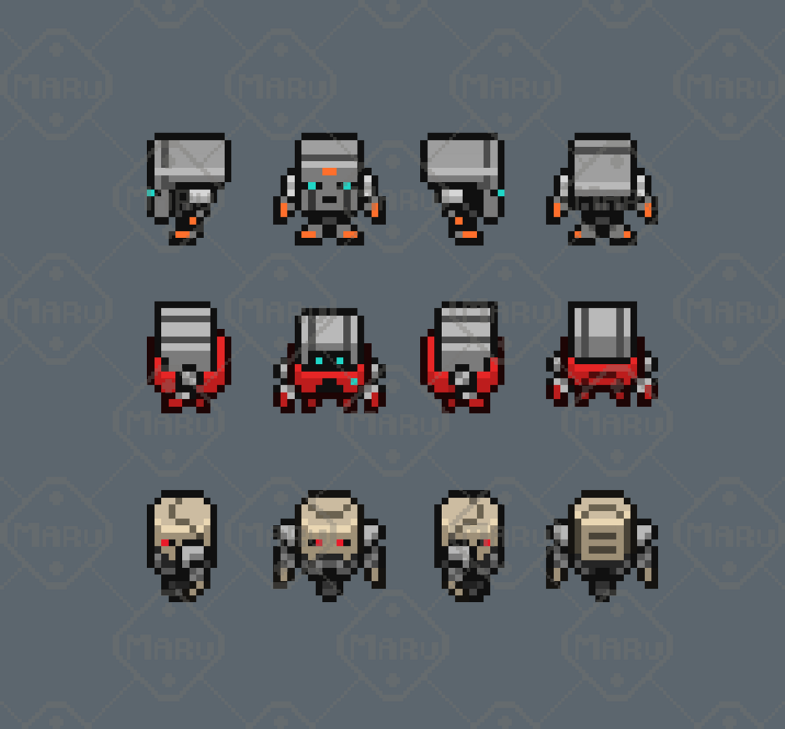 Features 16x16 pixel art characters 12 animated sci‑fi units Robots, drones, humanoid mechs, and futuristic characters Smooth 4‑direction animations Clean readability and consistent proportions Ideal for RPGs, exploration, survival, and sci‑fi games Compatible with Unity, Godot, GameMaker, RPG Maker, and more