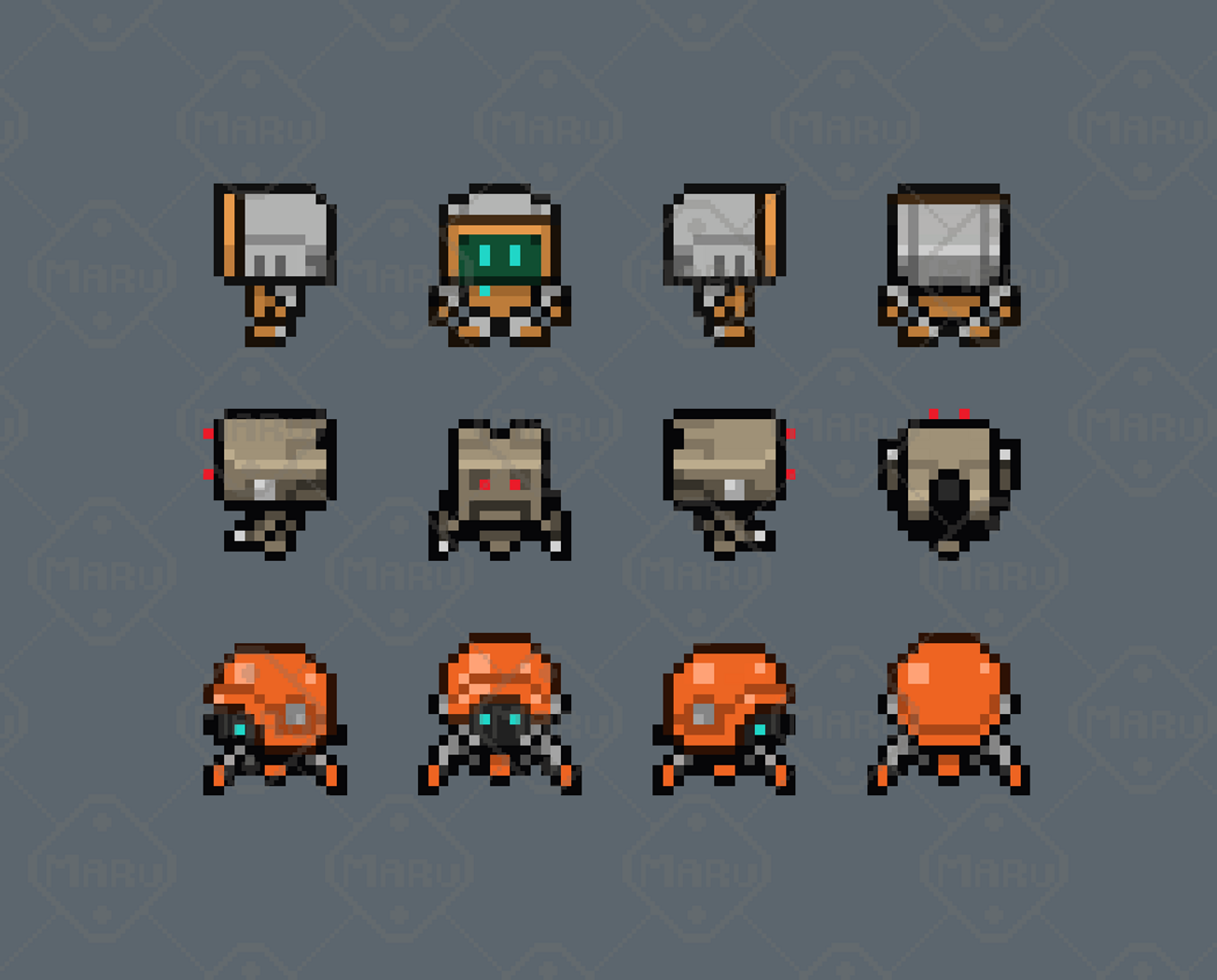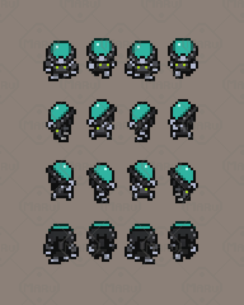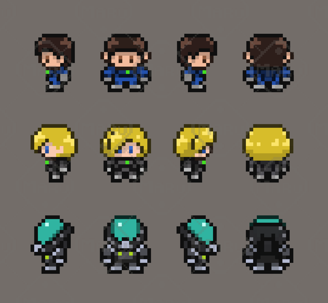 Features 16x16 pixel art characters 12 animated sci‑fi units Robots, drones, humanoid mechs, and futuristic characters Smooth 4‑direction animations Clean readability and consistent proportions Ideal for RPGs, exploration, survival, and sci‑fi games Compatible with Unity, Godot, GameMaker, RPG Maker, and more