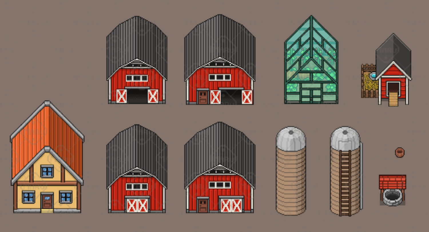 The Farm Essentials Pixel Bundle – 16x16 includes six complete farming asset packs designed for top‑down games, RPGs, survival systems, and cozy farming projects. This collection provides everything you need to build a fully functional farm environment: terrain tiles, fences, buildings, farmer characters, animals, and essential tools, all created in a clean and consistent 16x16 pixel art style.