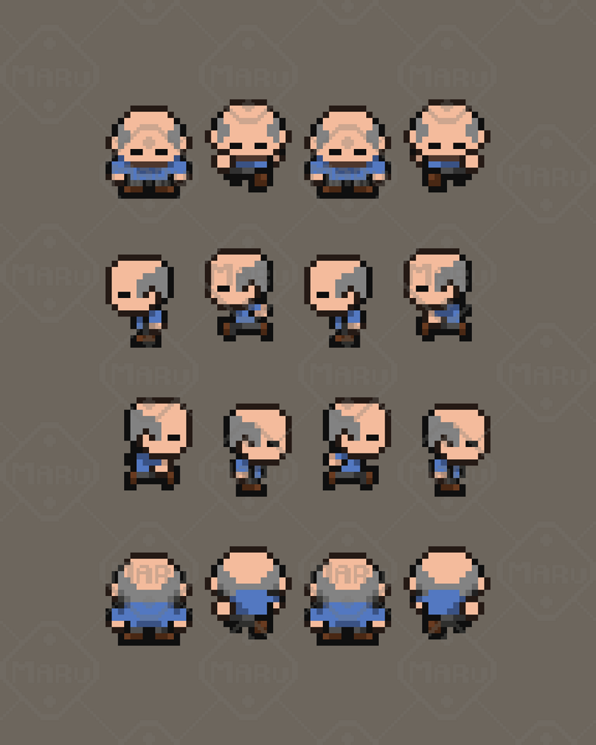 Features 16x16 top‑down pixel art Three characters: child, adult, elder Consistent style and proportions Ideal for NPCs, story events, cutscenes, and world‑building Clean, cohesive palette for professional results PNG format, ready to import
