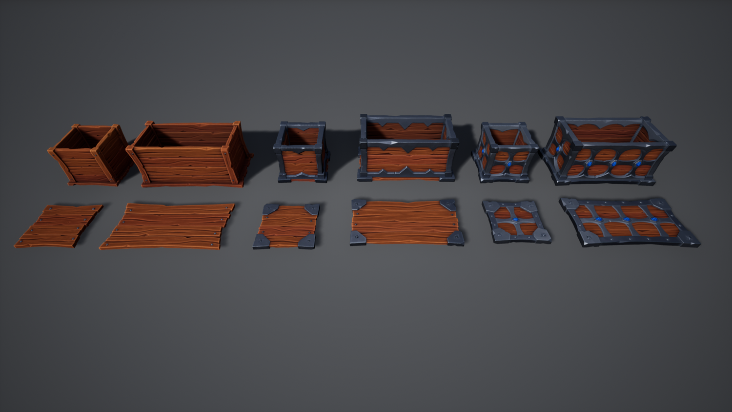 A Stylized Market pack with containers, displays and stands. Demo level is not included