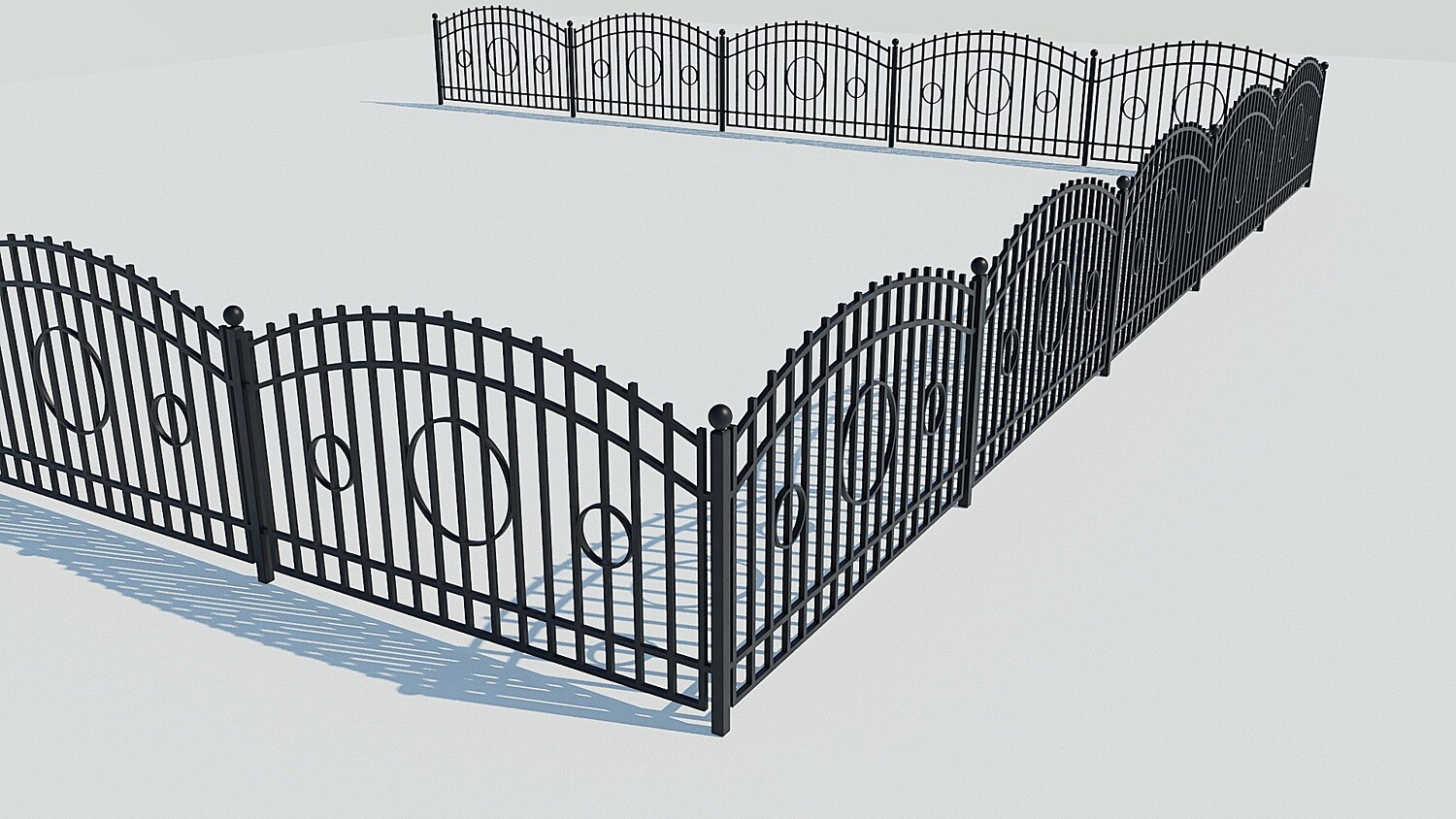 This fence with circles 3D model was created in Maya 3D. Textures were created in Substance Painter. Rendering was done in Arnold. This model is a single section of fencing. Suitable for creating fencing of any length.