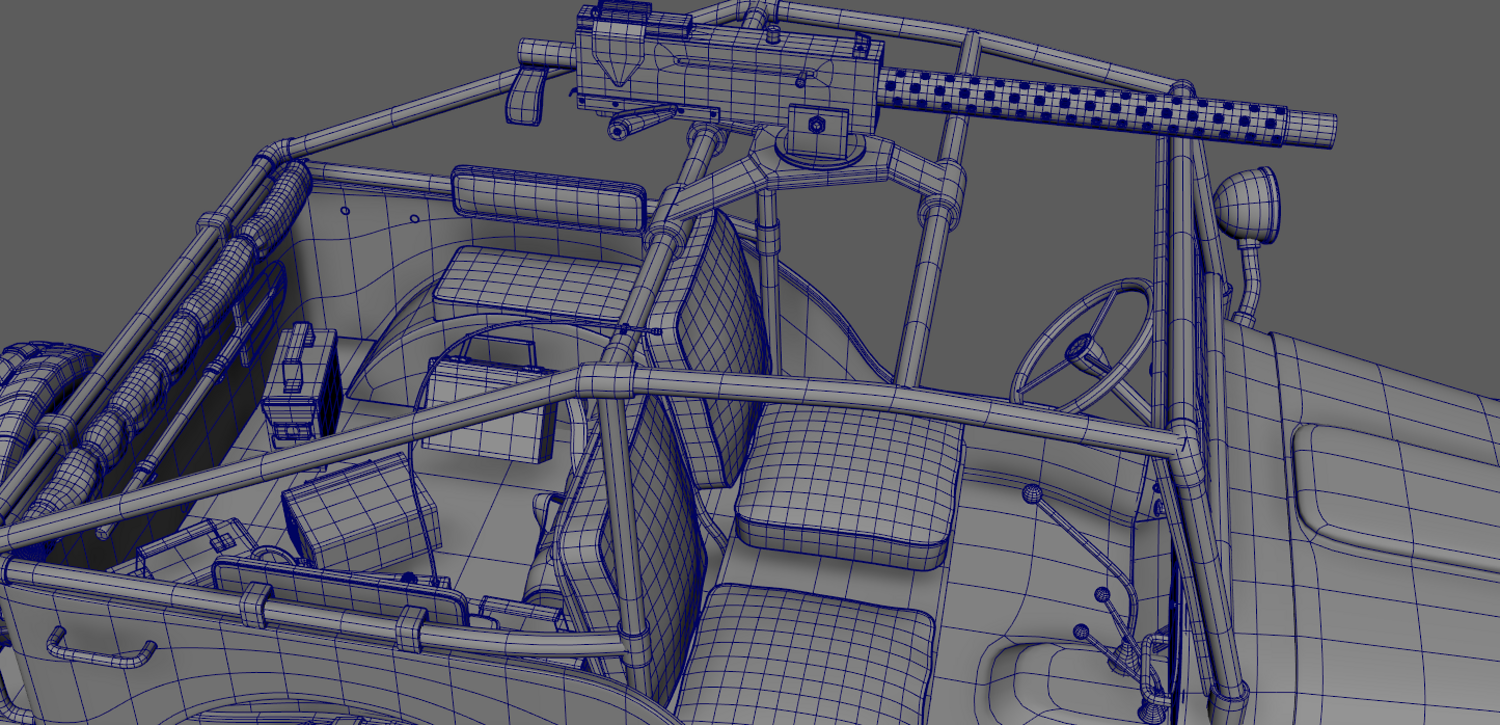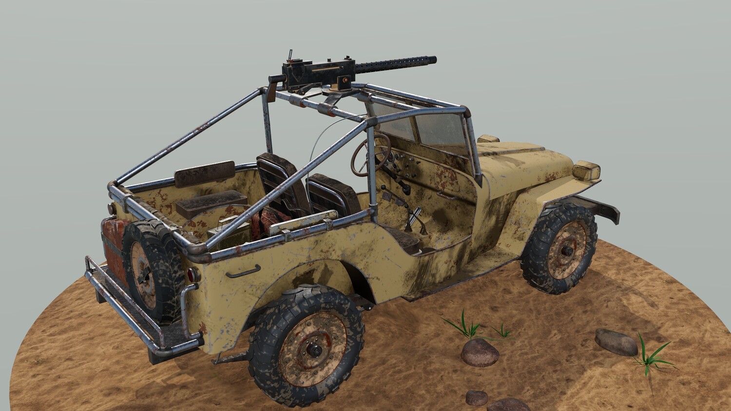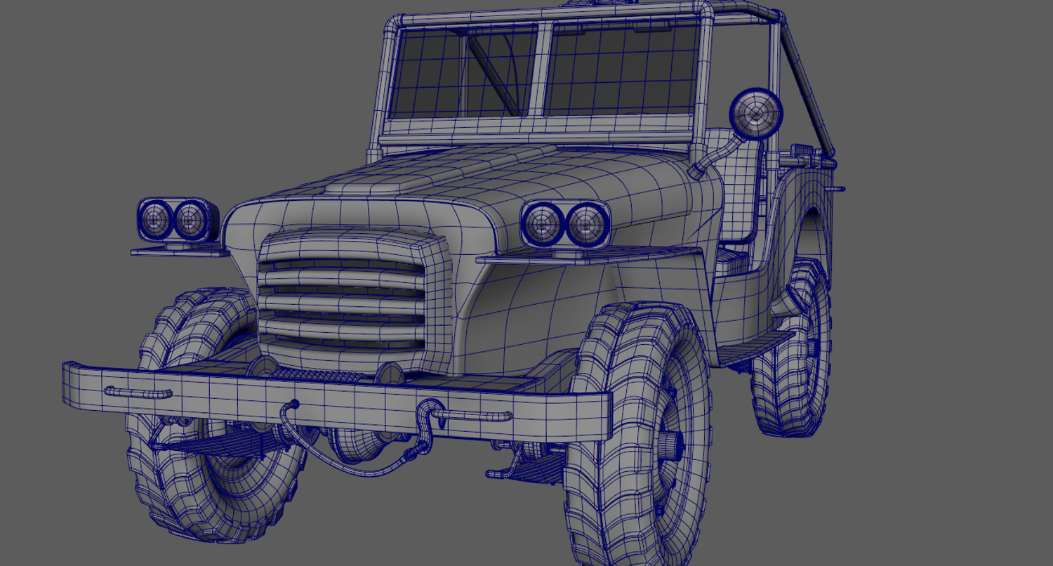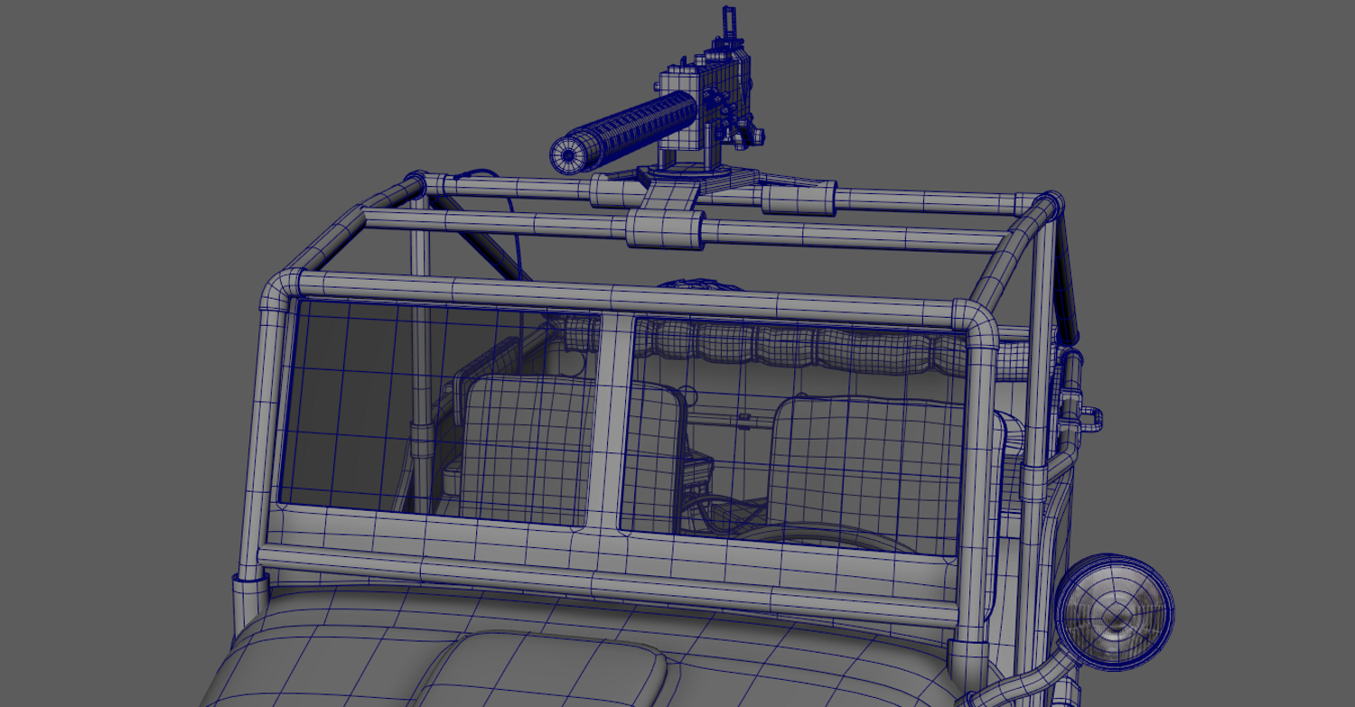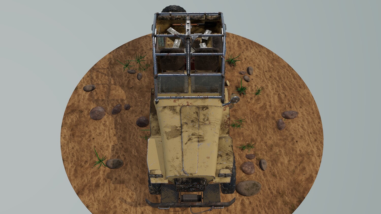 The Survivalist scene consists of a car model and a stand model. The models were created in the 3D editor Maya. Textures were created in Substance Painter. Render was used by Arnold. The car model is divided into 5 sets, which are assigned different materials. All textures are loaded in one folder.
