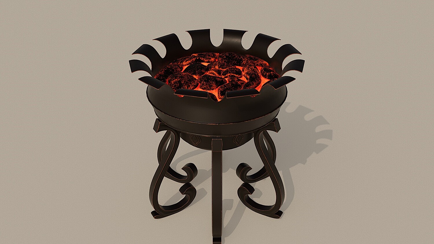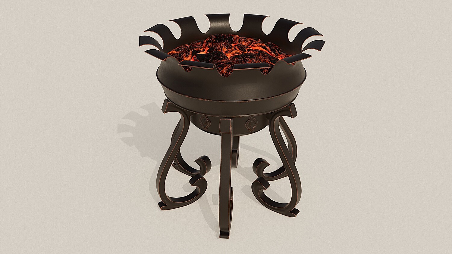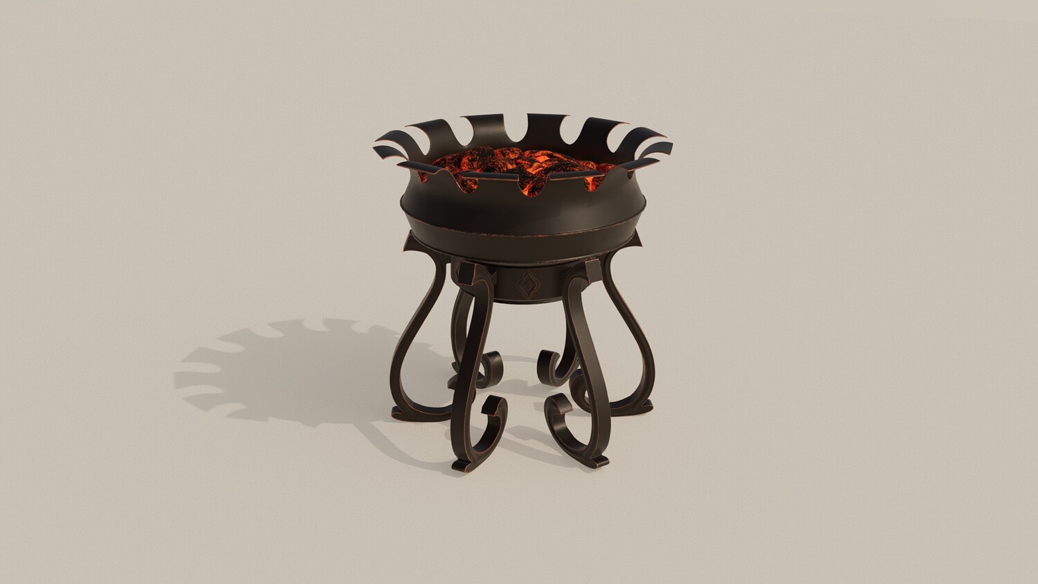 The model is a fantasy brazier made with antialiasing in mind and has low poly and high poly files.