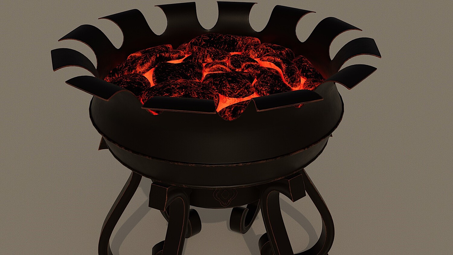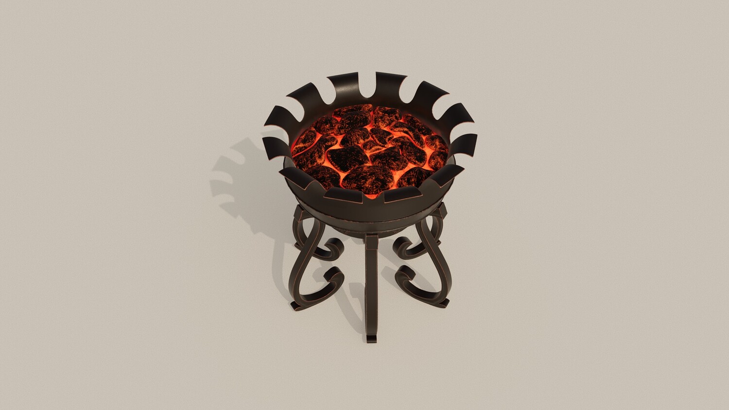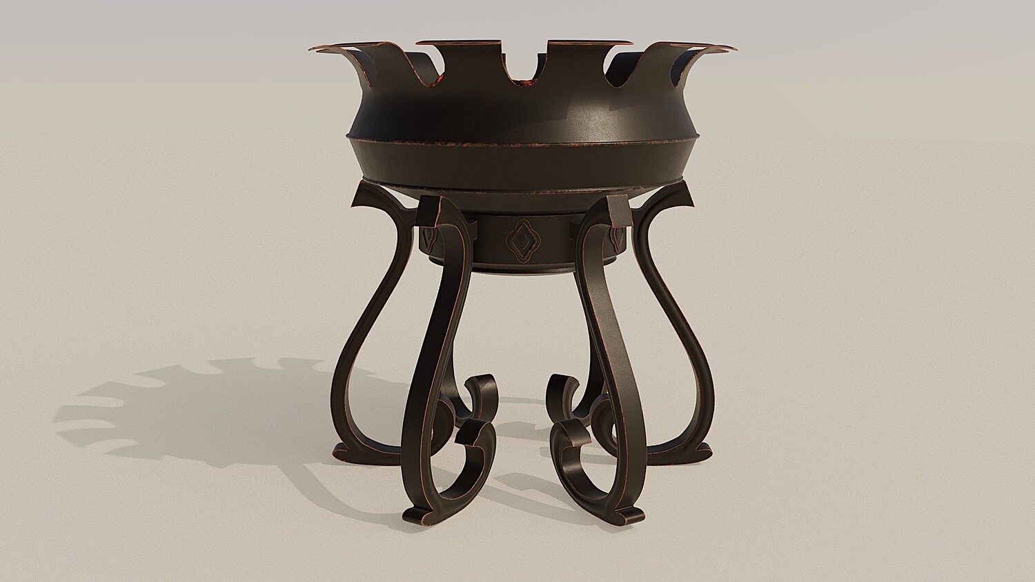 The model is a fantasy brazier made with antialiasing in mind and has low poly and high poly files.