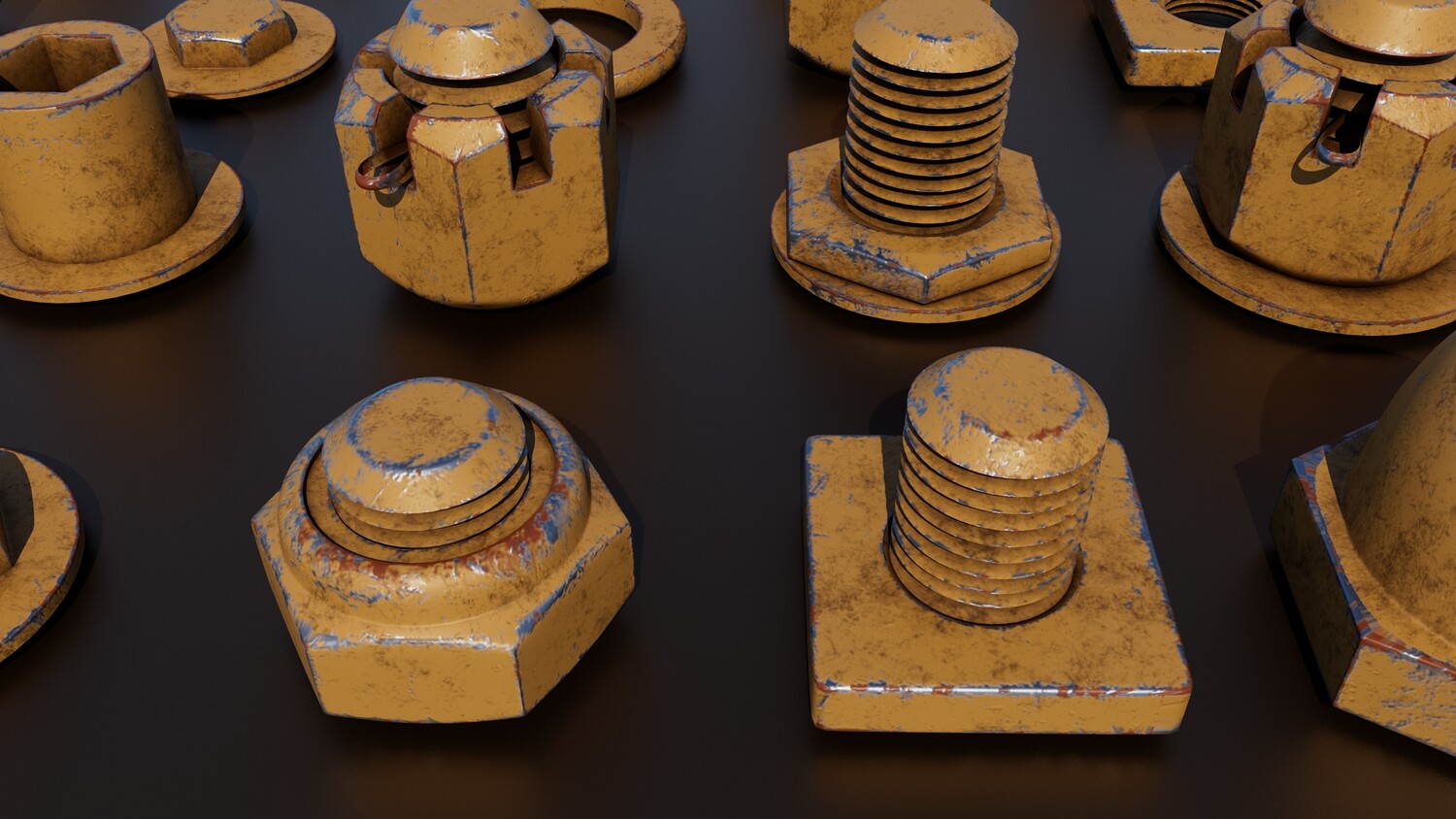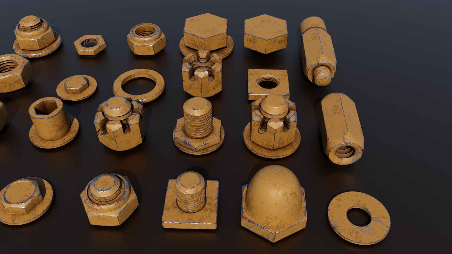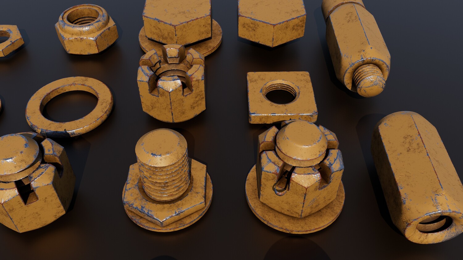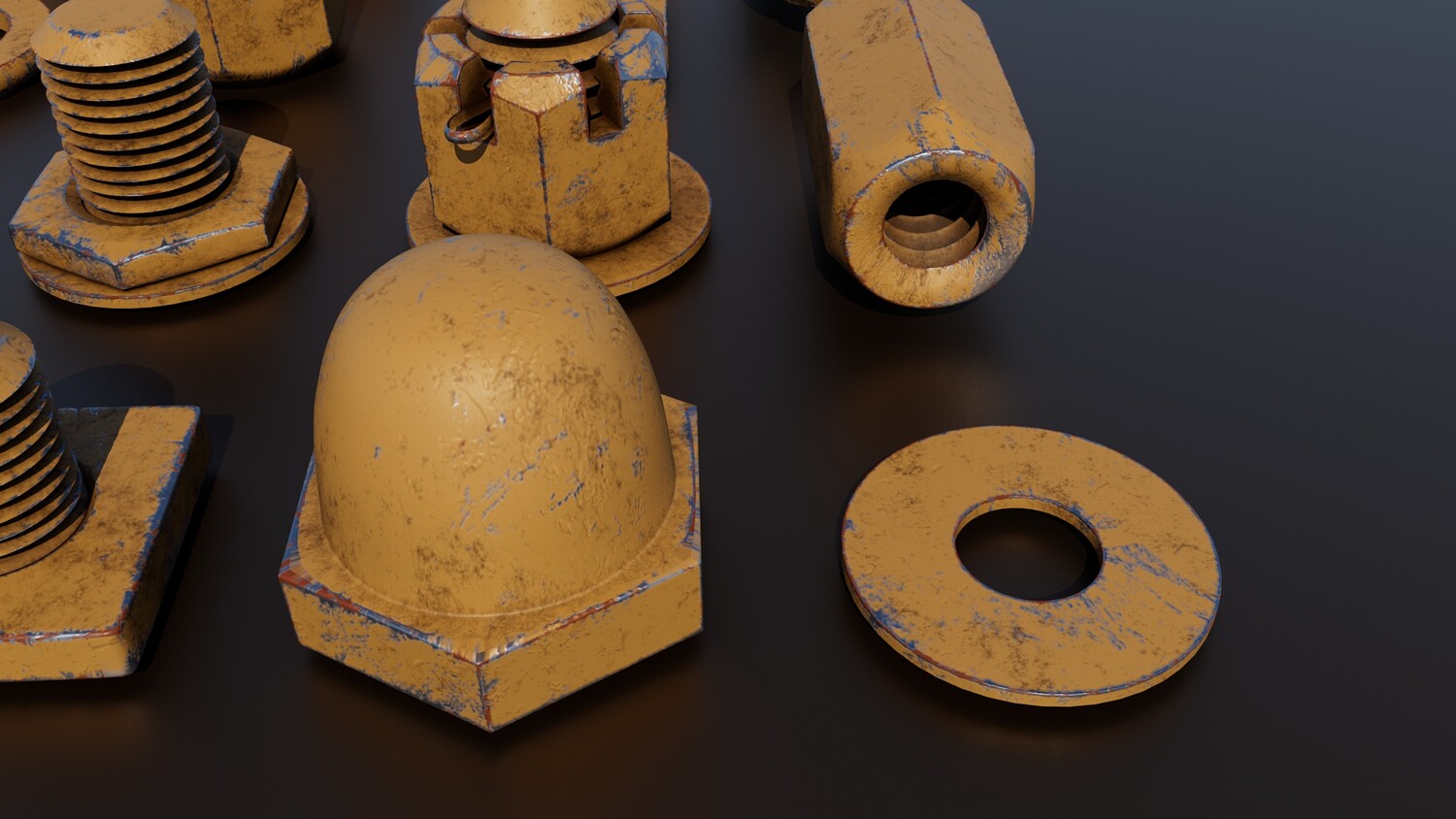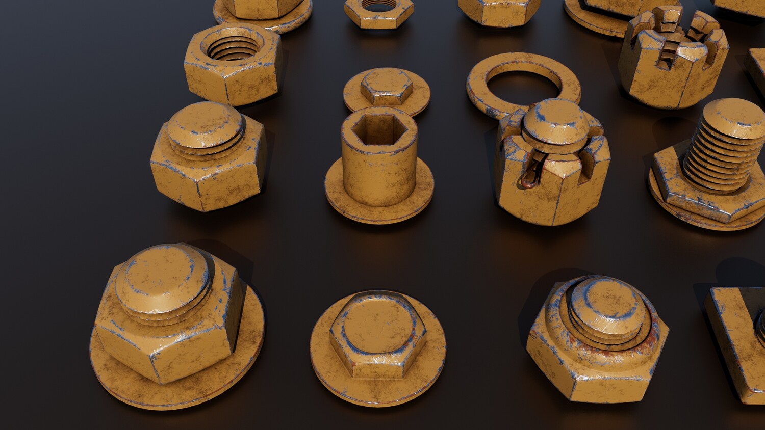 The Connections blue dirt scene consists of 23 models of nuts, bolts and washers. All models are made with anti-aliasing in mind and have a small weight. Models were modeled in Maya 3D. Textured in Substance Painter. Scene renders were created in Arnold. Textures: (PNG) - 9.17mb