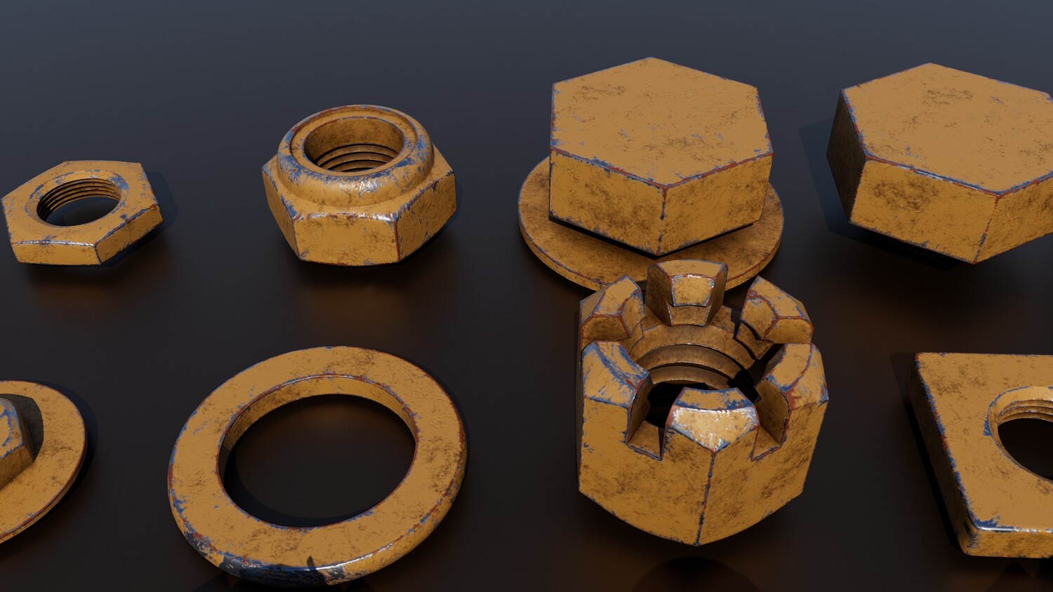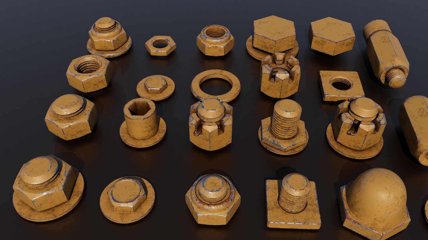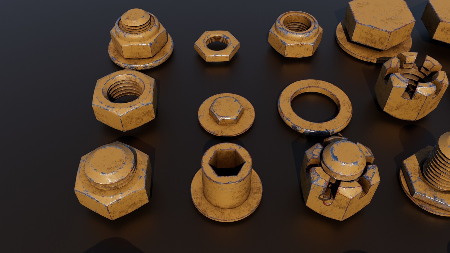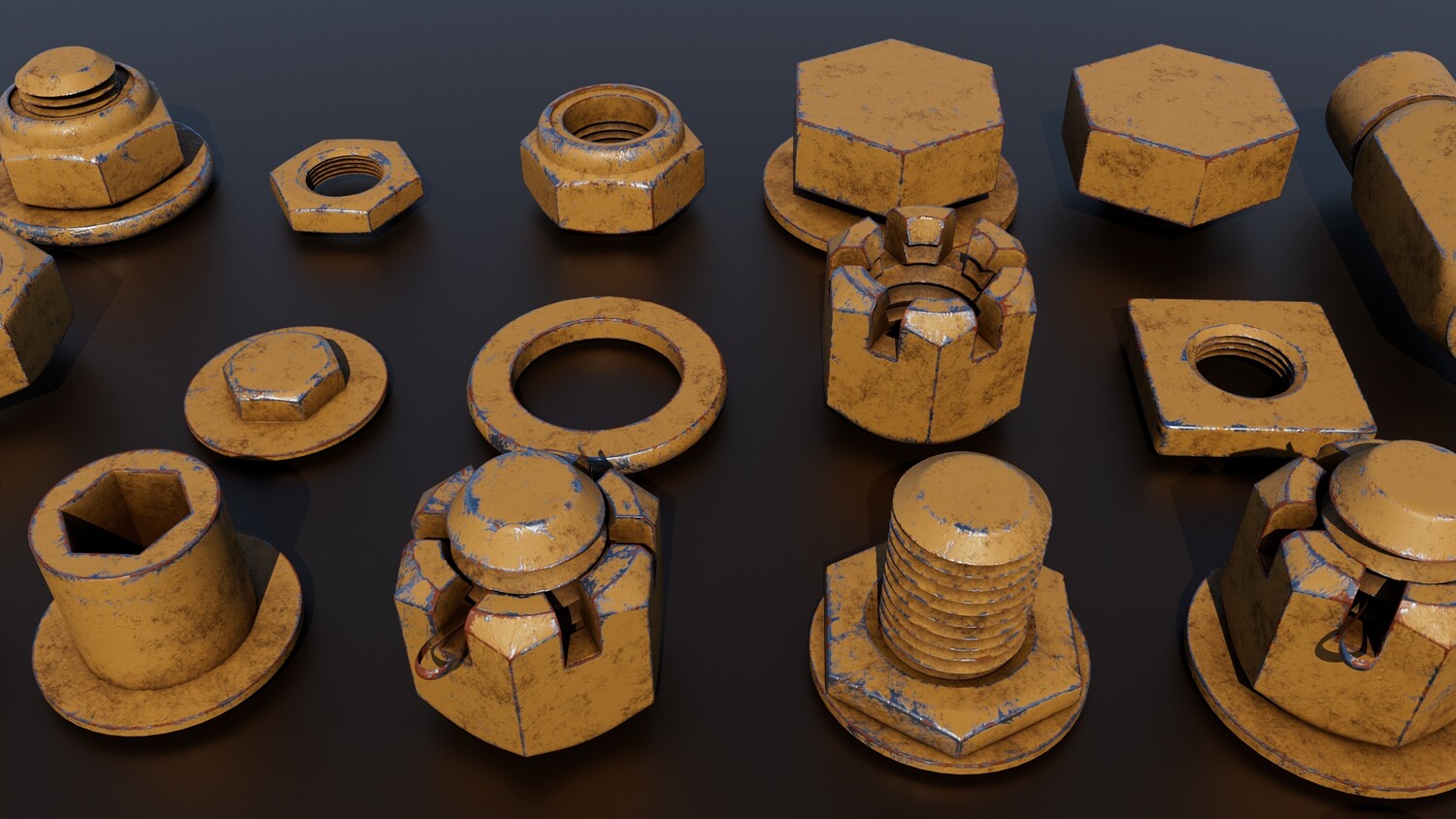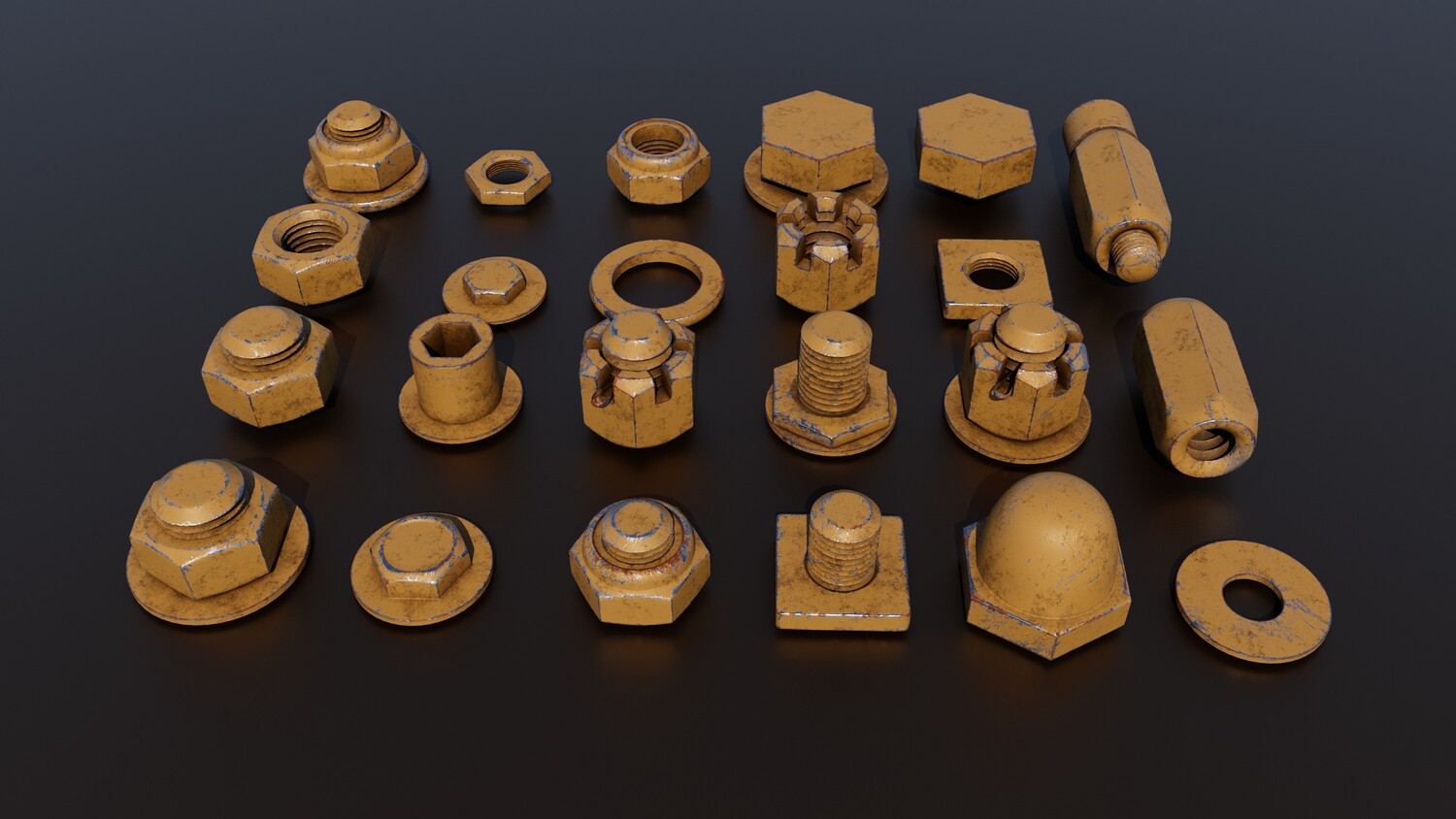The Connections blue dirt scene consists of 23 models of nuts, bolts and washers. All models are made with anti-aliasing in mind and have a small weight. Models were modeled in Maya 3D. Textured in Substance Painter. Scene renders were created in Arnold. Textures: (PNG) - 9.17mb