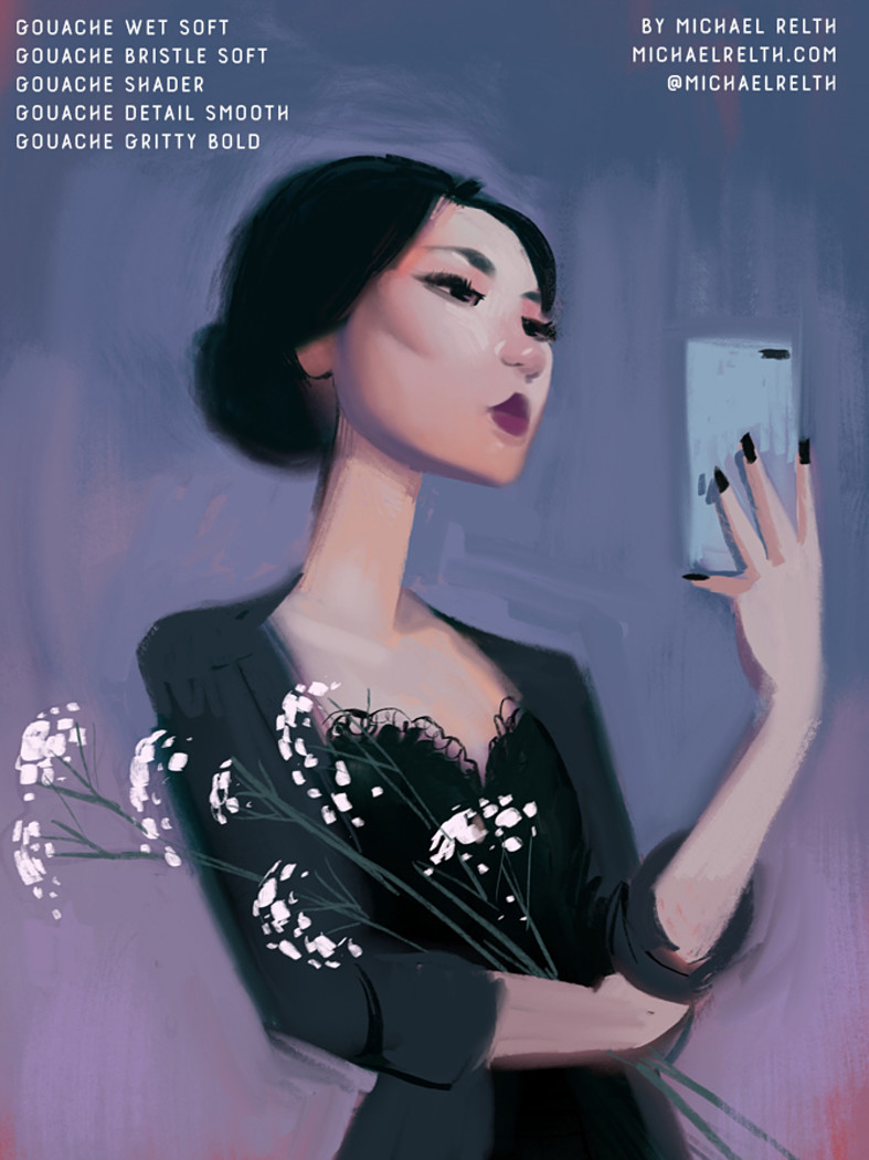The Gouache MaxPack is a set of brushes compatible with Procreate 4+