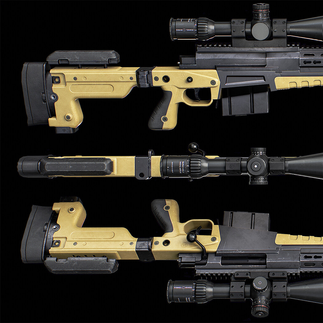 -Detailed low poly model. Clear topology, only tris and quads-THIS MODEL IS GAME READY and also can be used in cinematic films and movies.-Can be used in all current game engines such a Unity 3d, CryEngine 5, Unreal Engine 4 etc. -Rendered in Marmoset. sniper vertex: 2.4205 scope vertex: 5.839 harris bipods: 11.181
