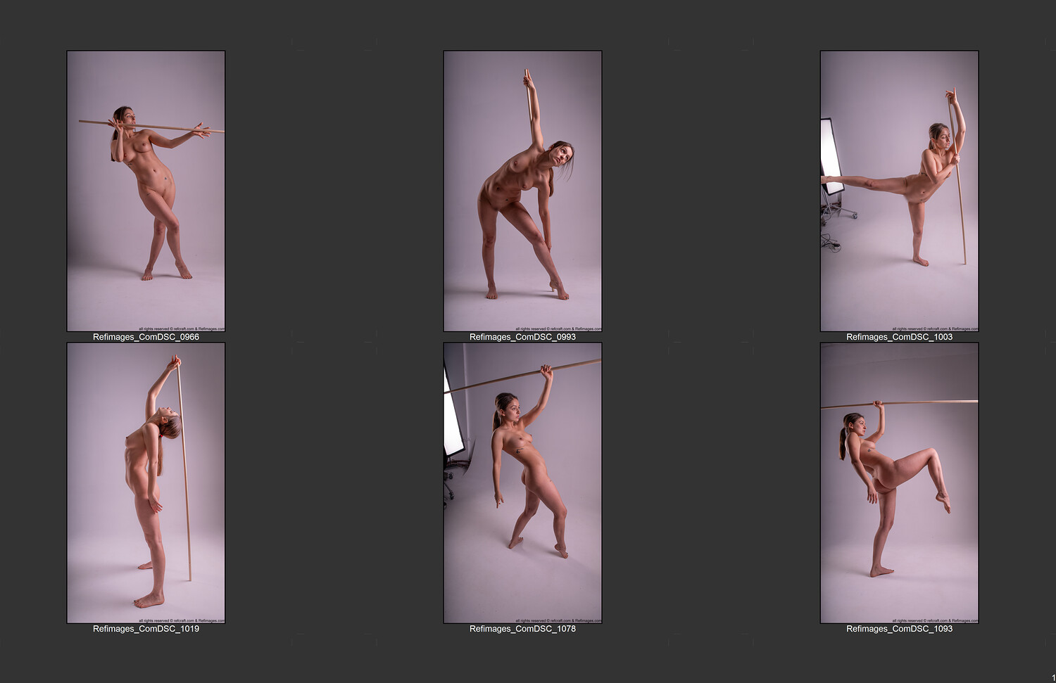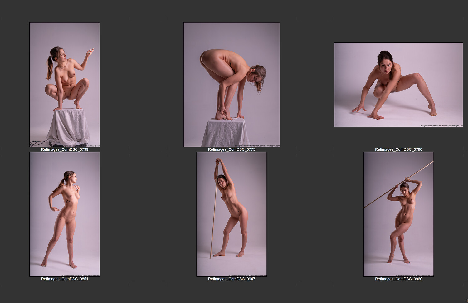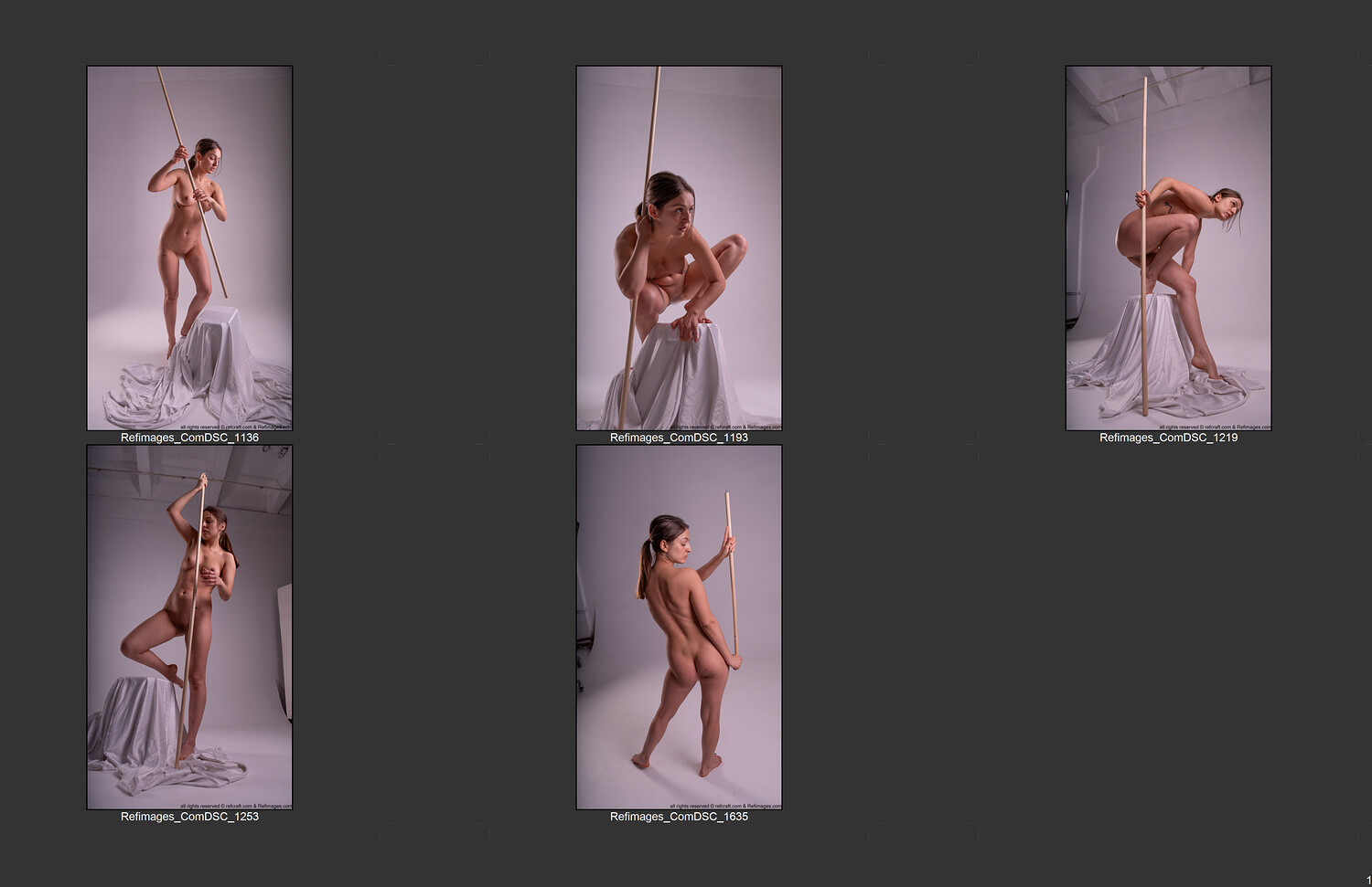 Captured with soft studio lighting and a clean background, this set highlights natural anatomy, strong gesture flow, and a wide range of expressive movements. From elegant standing silhouettes to powerful action poses with props, these references are ideal for character design, gesture drawing, anatomy study, and fantasy or dynamic illustration work.