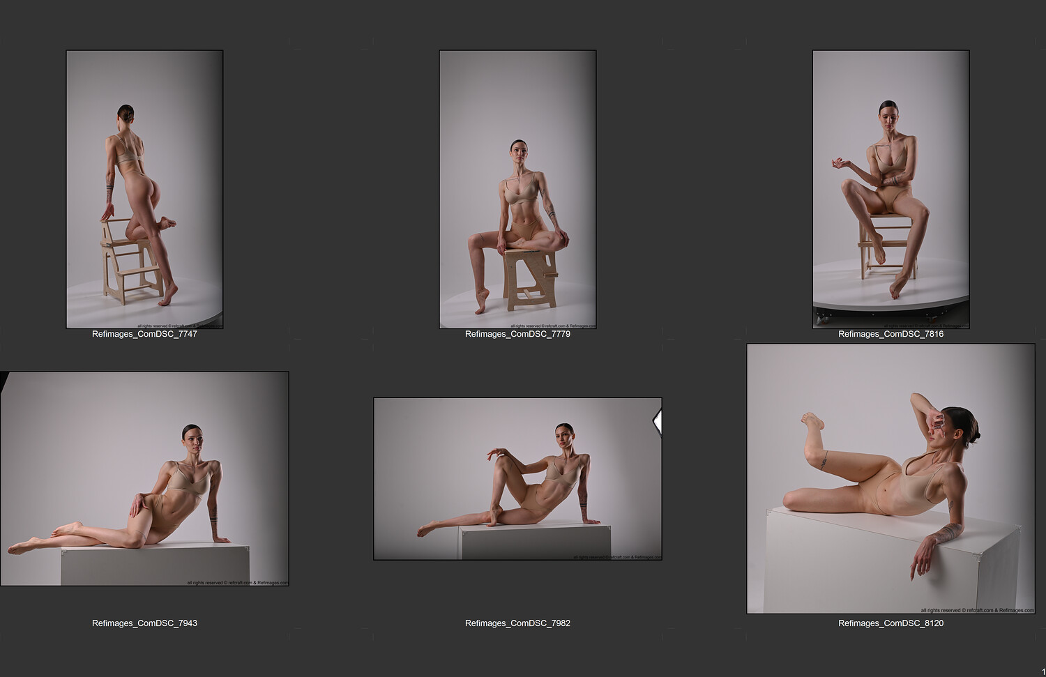 The model moves naturally through standing, sitting, lying, and transitional poses, capturing authentic weight shifts, tension, relaxation, and rhythm of the human body