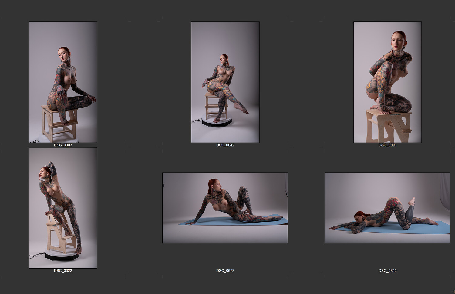 Tattoo And Body 1500+ is a stunning photo reference collection specifically designed for artists specializing in complex body shapes, dynamic female poses, and intricate full-body tattoo details. Featuring 1500+ high-quality images, this pack showcases a fully tattooed model in a wide range of expressive positions — from soft, elegant figure studies to bold, sculptural poses.