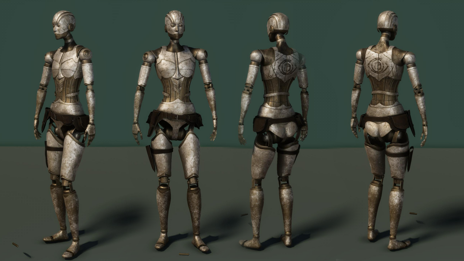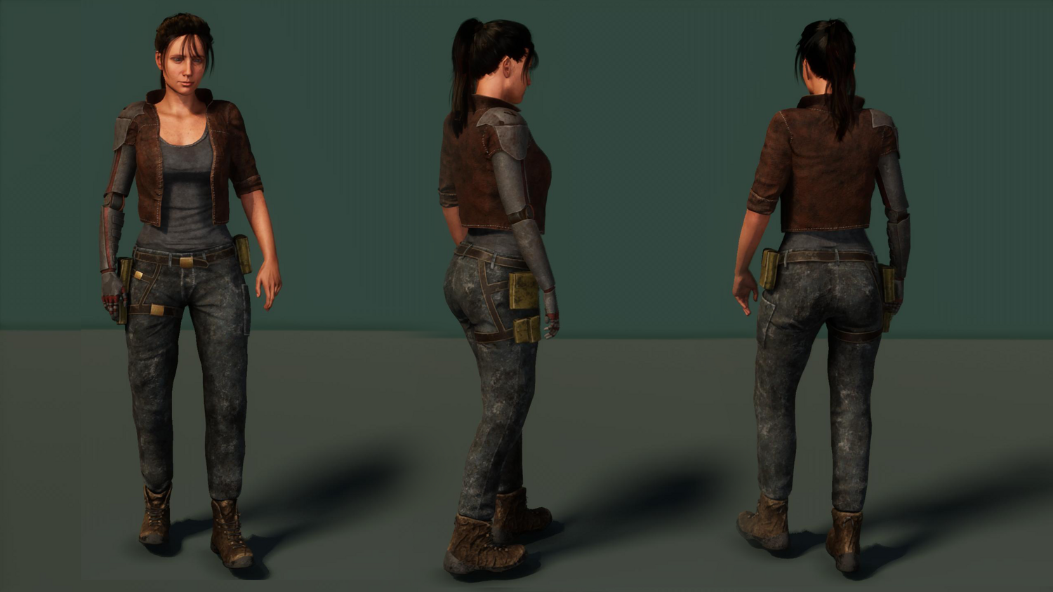 • Clothing pieces can be removed or replaced • Base body remains intact under outfits • Mechanical arm character includes both mechanical and human arm versions • Designed to support outfit customization workflows