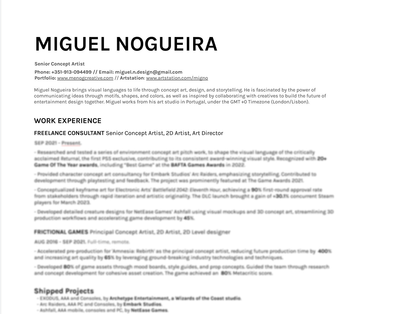 This is the same resume that recently helped me secure a job among over 1,500 applicants for a freelance concept artist position at an AAA studio. What makes this resume so special? It was specifically designed to beat the system.
