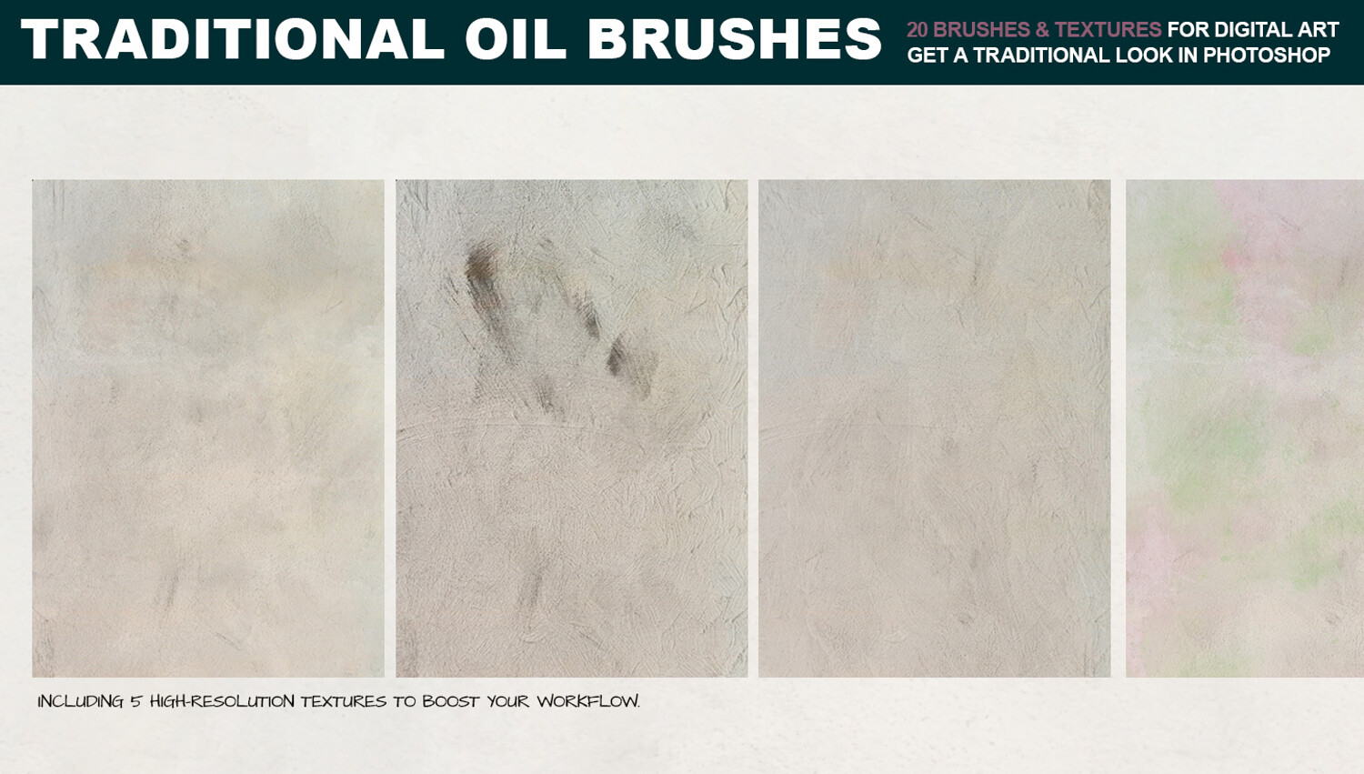 Traditional Oil Digital Art Pack, including: - 20 Custom Photoshop brushes, .abr file (created in Adobe Photoshop 2025) - 5 Paper textures, Hi-Res, included as .jpg files.