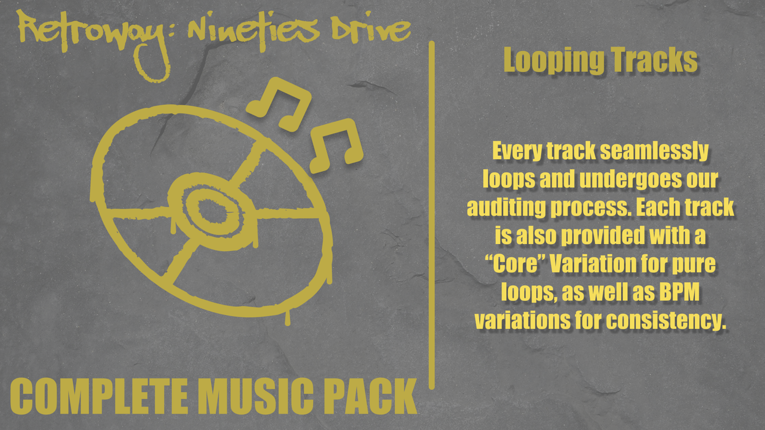 The Retrowave pack bases itself around 90’s hip hop and rock, inspired by retro gaming, hoping to deliver the perfect solution to your product’s music problems.