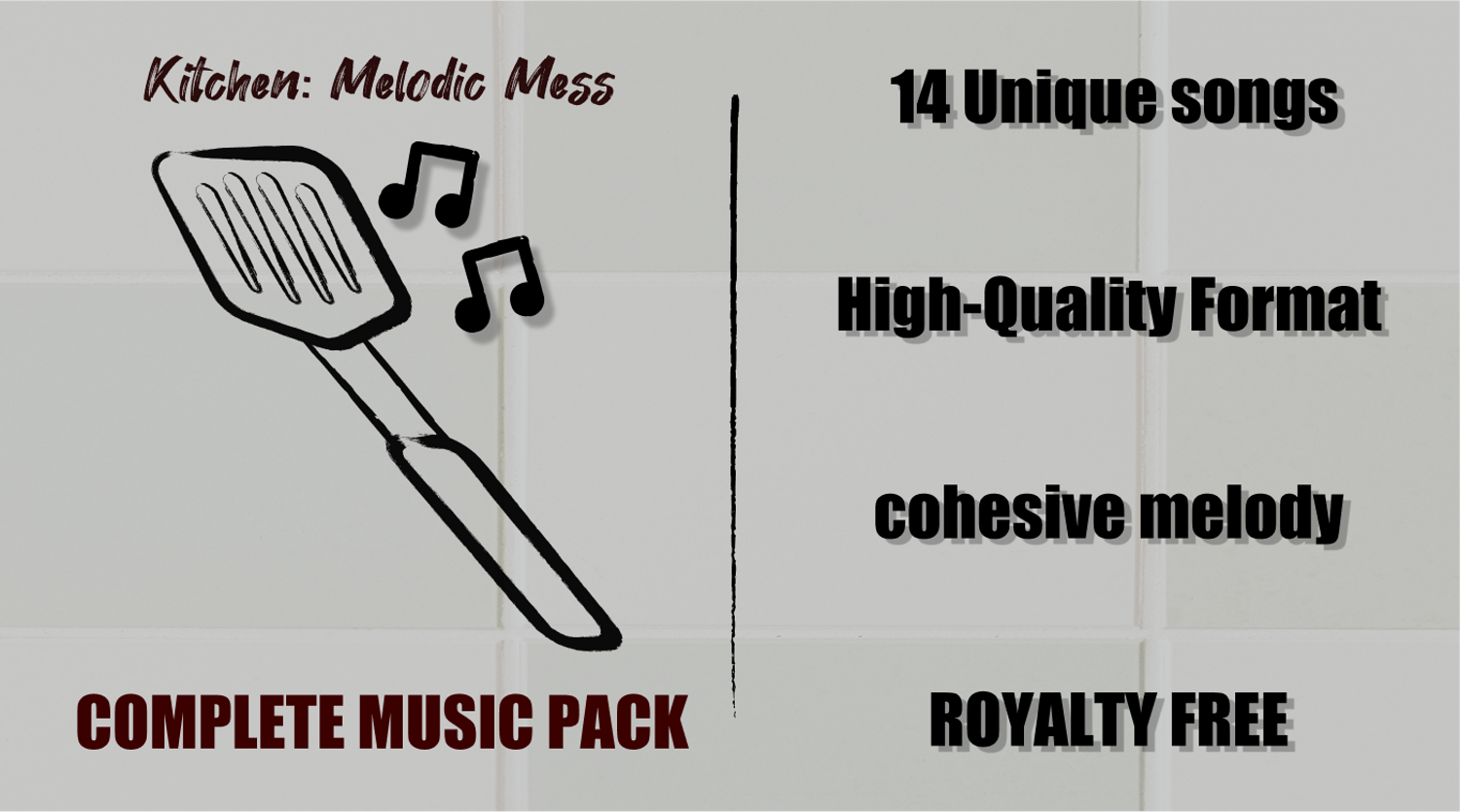MJPROJECTS Music Pack — “Kitchen ” A cohesive collection of 14 variations of a main theme, designed to deliver a full, immersive soundtrack experience for your game or project. The MJPROJECTS packs provide a one-stop solution for consistent, connected music that gives your product a polished, professional feel. Inspired by whimsy, baking, and retro gaming, the Kitchen Pack blends ambient and melodic themes perfect for sizzling, frying, and cooking environments — but flexible enough to fit a variety of moods and scenes. Pack Includes: • Main Theme • Boss Theme • Day Theme • Night Theme • Mystic Theme • Menu Theme • Cinematic Theme • Hopeful Theme • Cave Theme • Distorted Theme • 8-Bit Theme • Synthwave Theme • Combat Theme • Stripped-down and looped variations for easy integration Whether you’re crafting an RPG, a cooking game, a puzzle adventure, or a story-driven game, the Kitchen Pack provides versatile music layers to bring your world to life. https://youtu.be/xq9QnnX4O7I