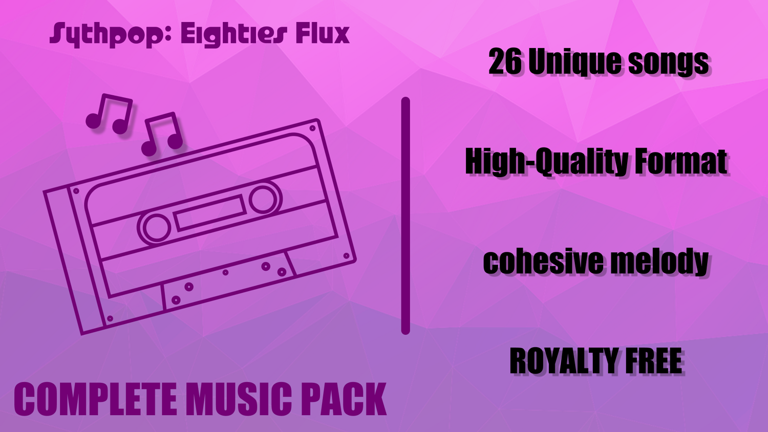 Inspired by 80’s synth, industrial music, and retro gaming, the Synthpop Pack blends ambient and melodic themes perfect for cyberpunk, exploration, and mysterious environments — but flexible enough to fit a variety of moods and scenes.