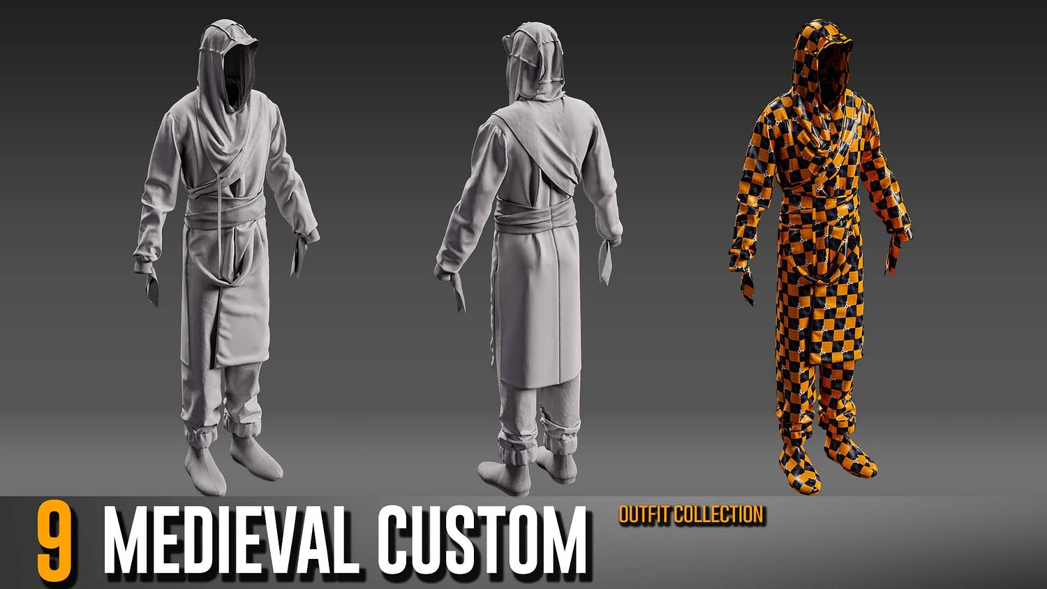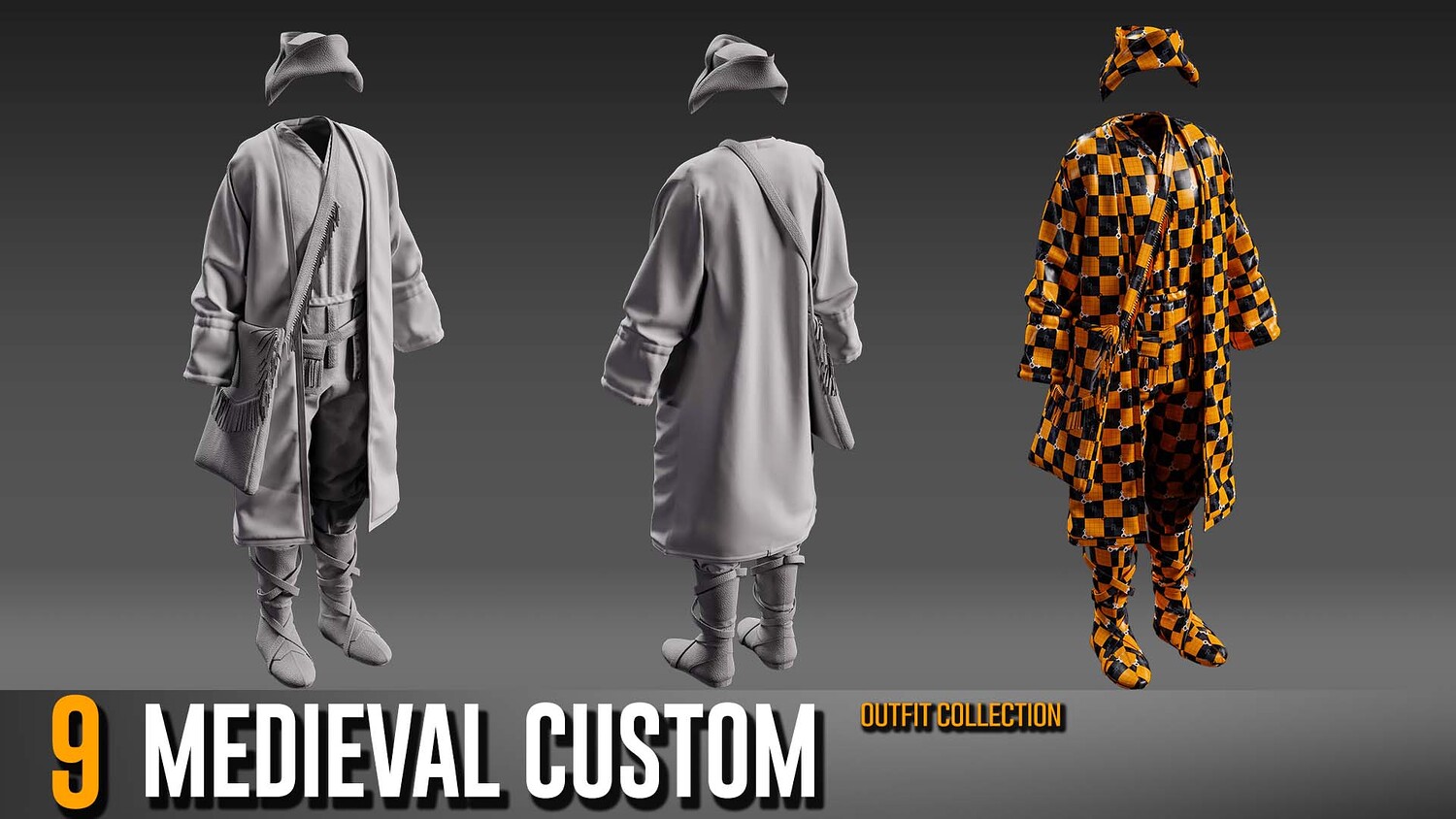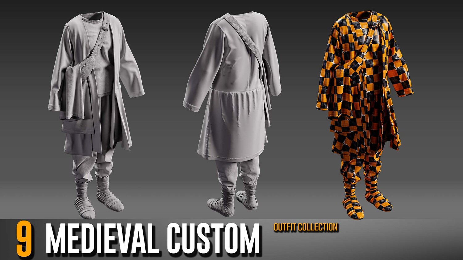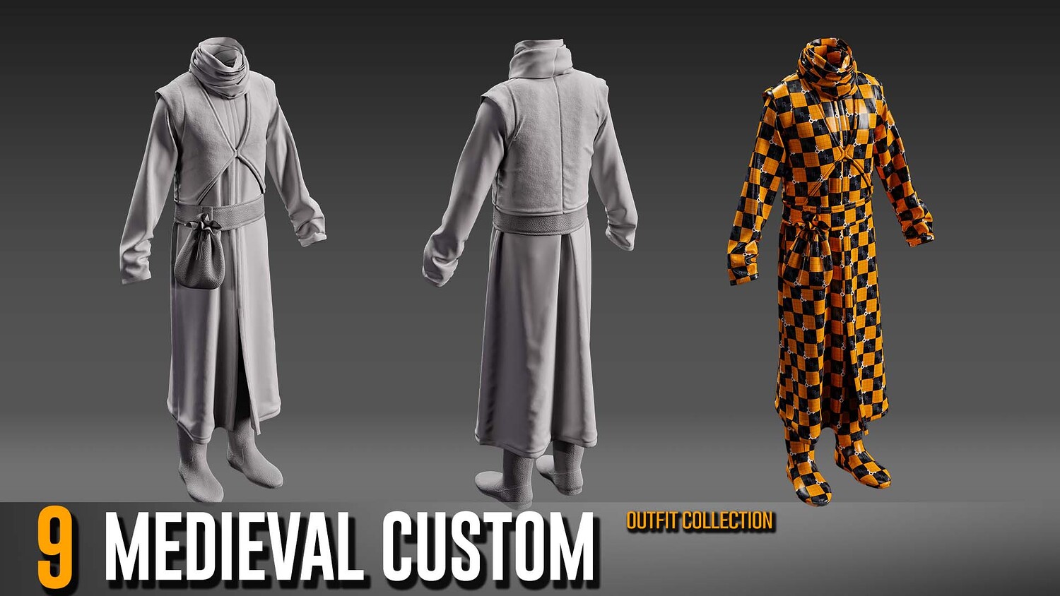 🎨Our product is tailored to enhance the style of Medieval Custom Collection enthusiasts with a collection of 9 unique base meshes for Medieval Custom Collection.🎨 Crafted to simplify the creation and prototyping process, our offering includes FBX and OBJ files for easy use in prototyping or texturing to achieve your desired look. In addition, Marvelous Designer/CLO 3D projects are also included, giving you the flexibility to re-simulate or add extra details as needed. These assets are perfect for those involved in fashion design and offer neatly organized garment arrangements alongside 9 previews for each Medieval Custom Style.