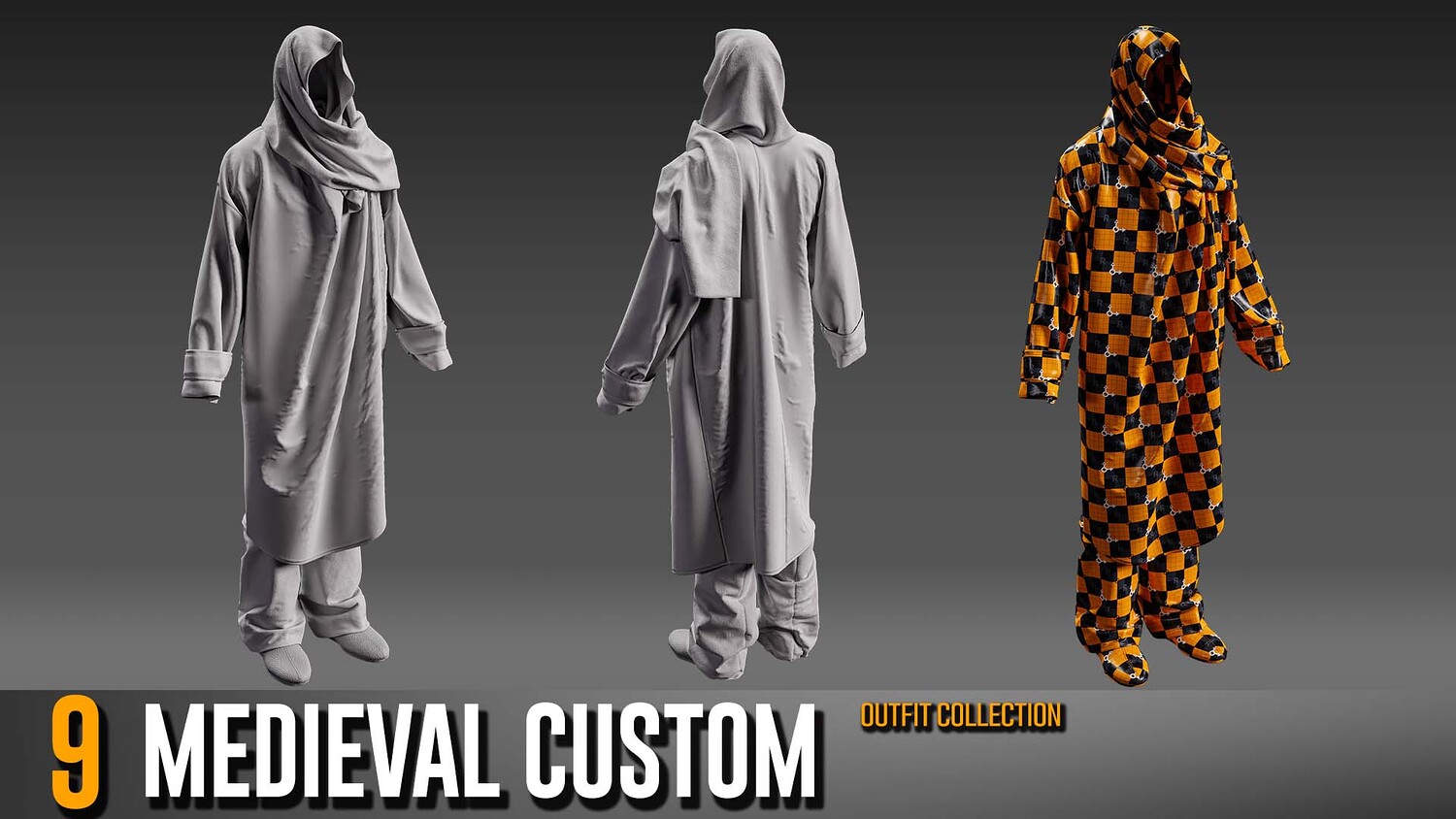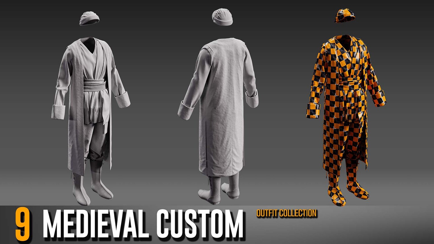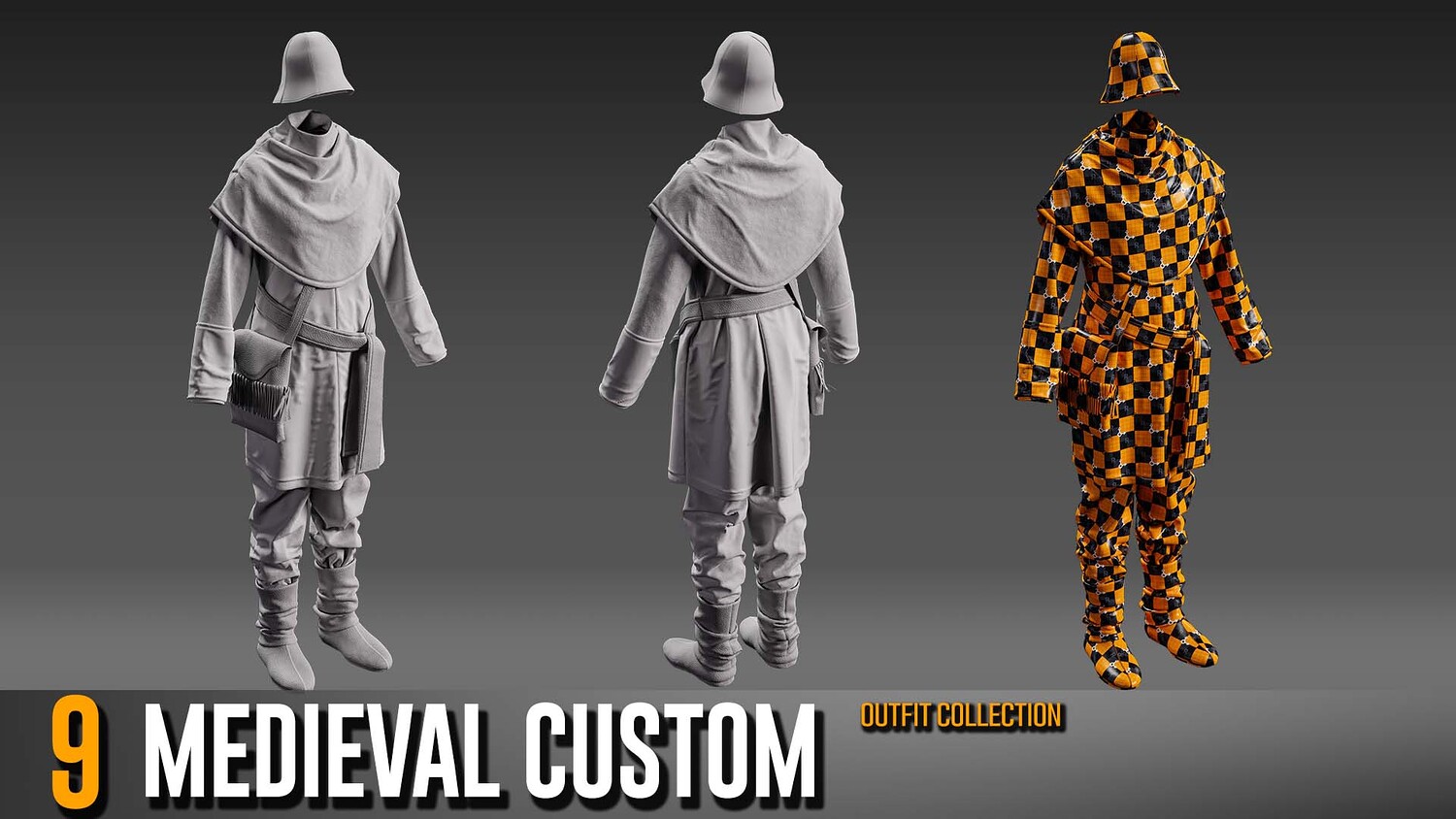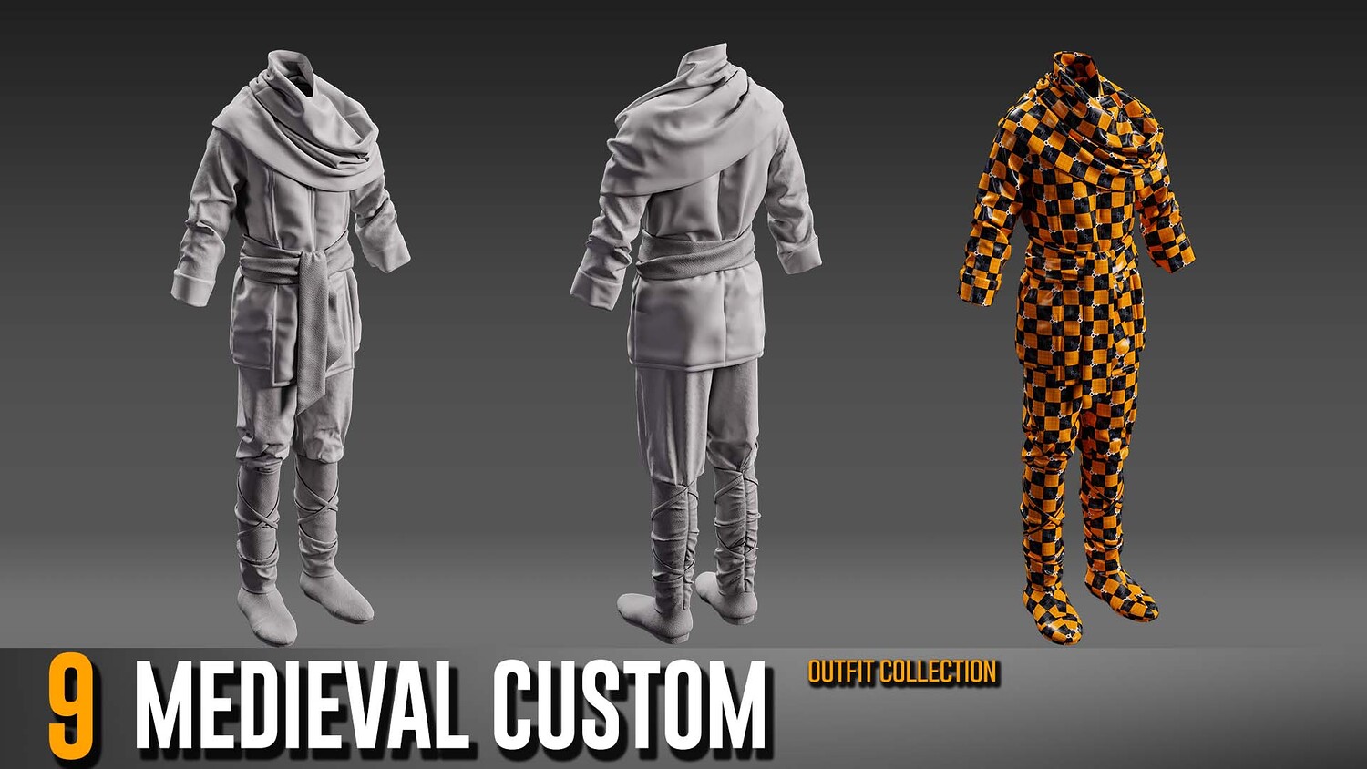 🎨Our product is tailored to enhance the style of Medieval Custom Collection enthusiasts with a collection of 9 unique base meshes for Medieval Custom Collection.🎨 Crafted to simplify the creation and prototyping process, our offering includes FBX and OBJ files for easy use in prototyping or texturing to achieve your desired look. In addition, Marvelous Designer/CLO 3D projects are also included, giving you the flexibility to re-simulate or add extra details as needed. These assets are perfect for those involved in fashion design and offer neatly organized garment arrangements alongside 9 previews for each Medieval Custom Style.