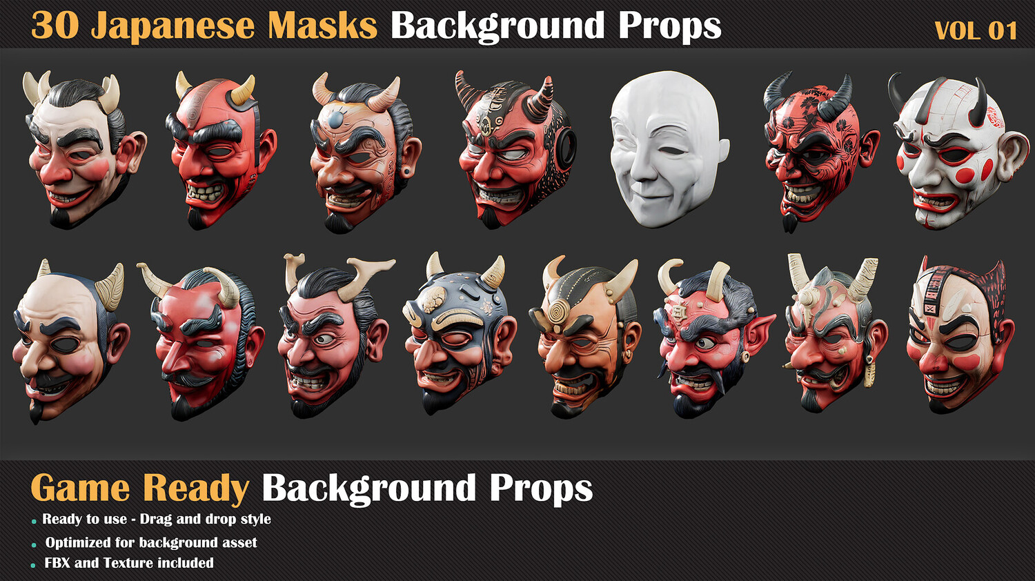 30 Japanese Masks Background Props - VOL 01