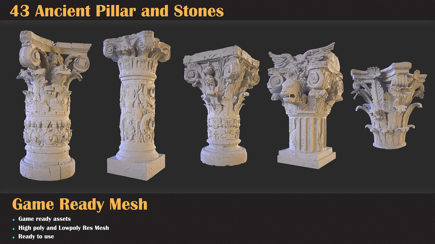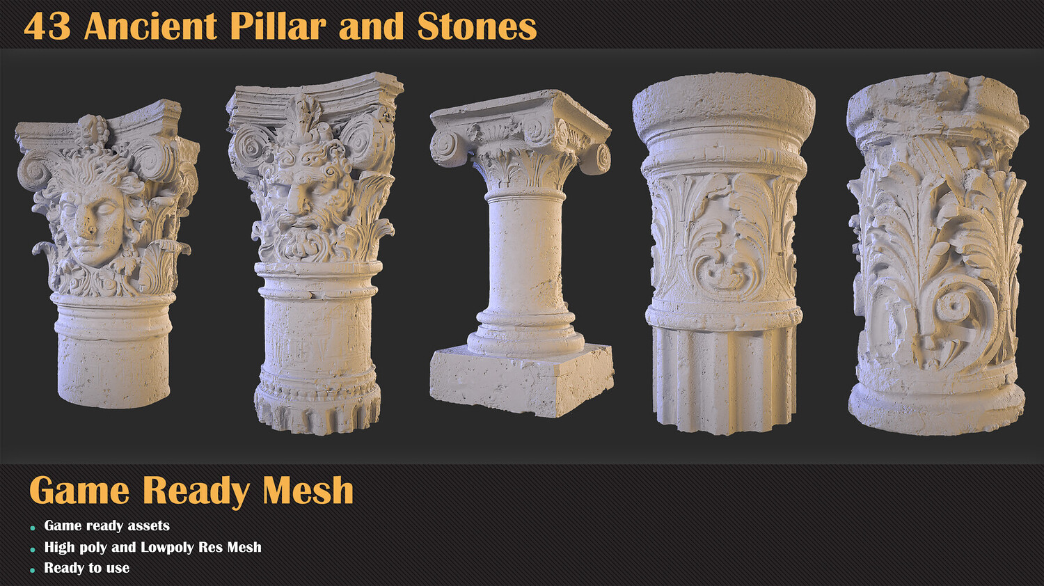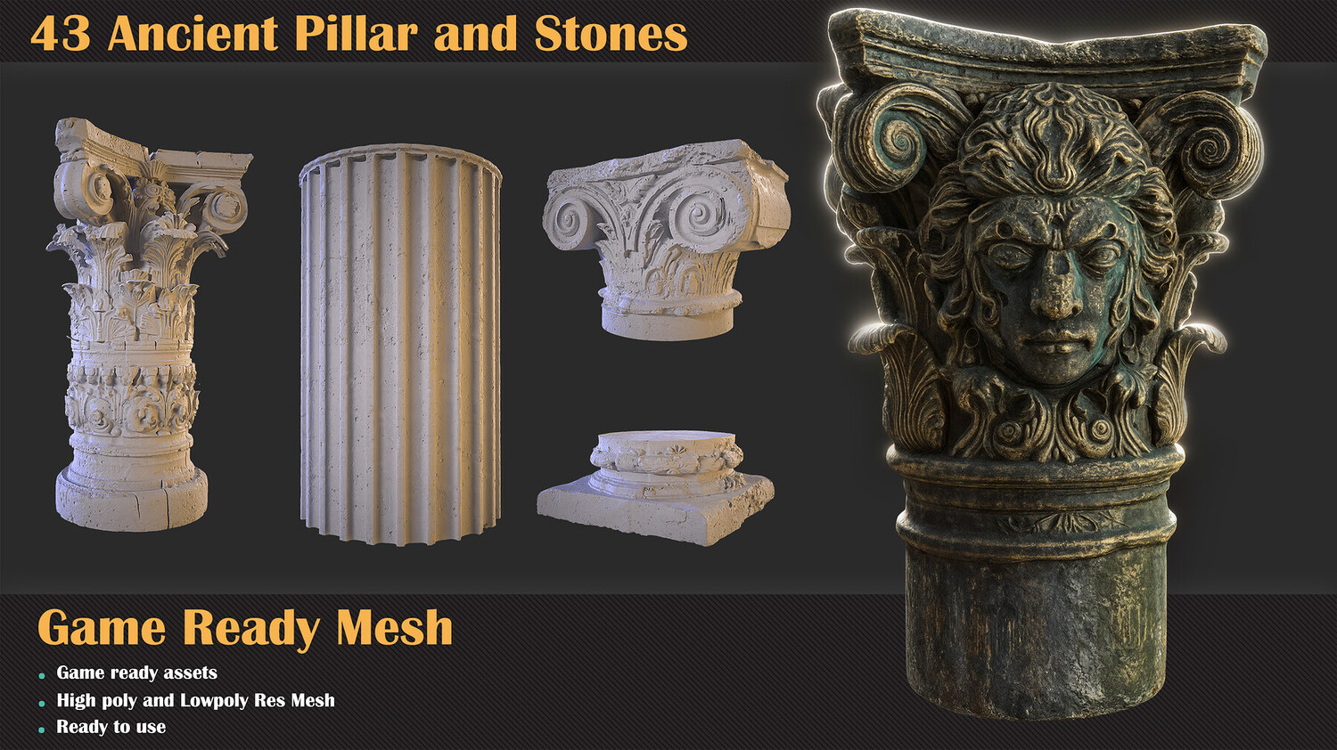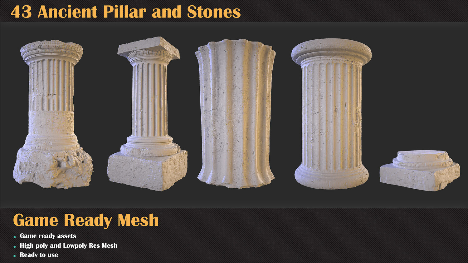 Youβll get 43 Ancient Pillar and Stones, perfect for the environment, game-ready.