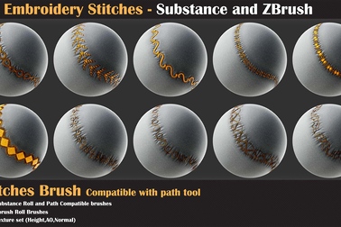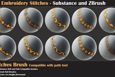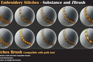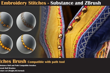 ✨ Make your 3D designs stand out with our set of 44 Embroidery Stitches. Perfect for ZBrush and Substance Painter, this trim brush pack easily fits into your projects, helping you create detailed and beautiful textures. Whether you’re adding fine clothing details, decorative patterns, or enhancing your textures, these brushes have got you covered. ✨