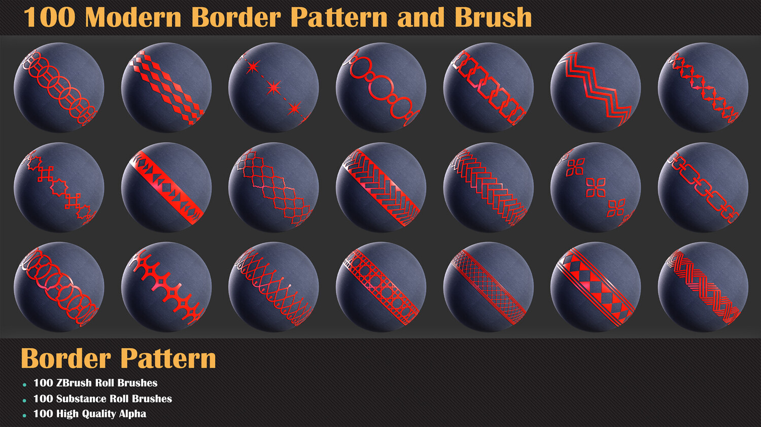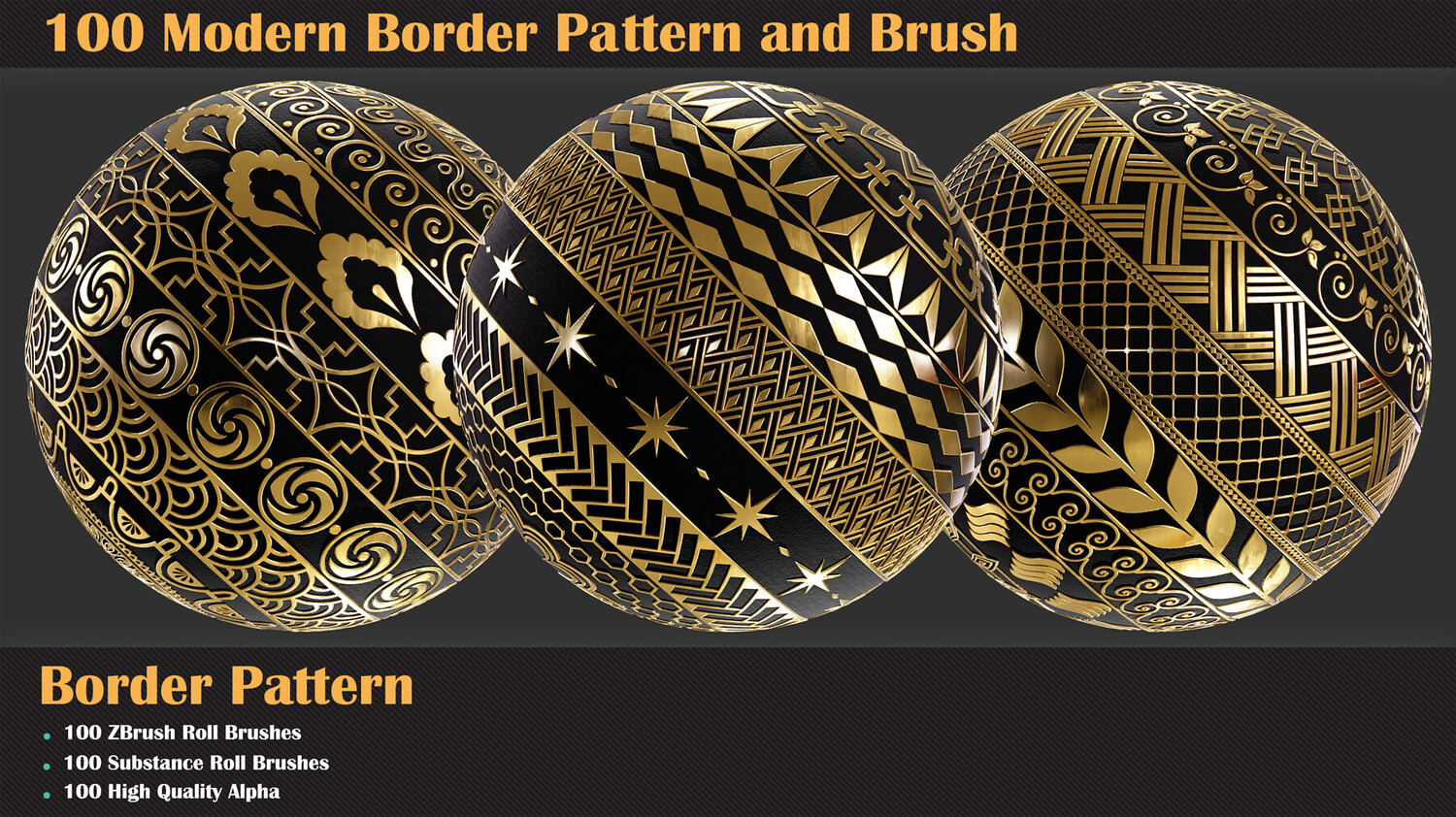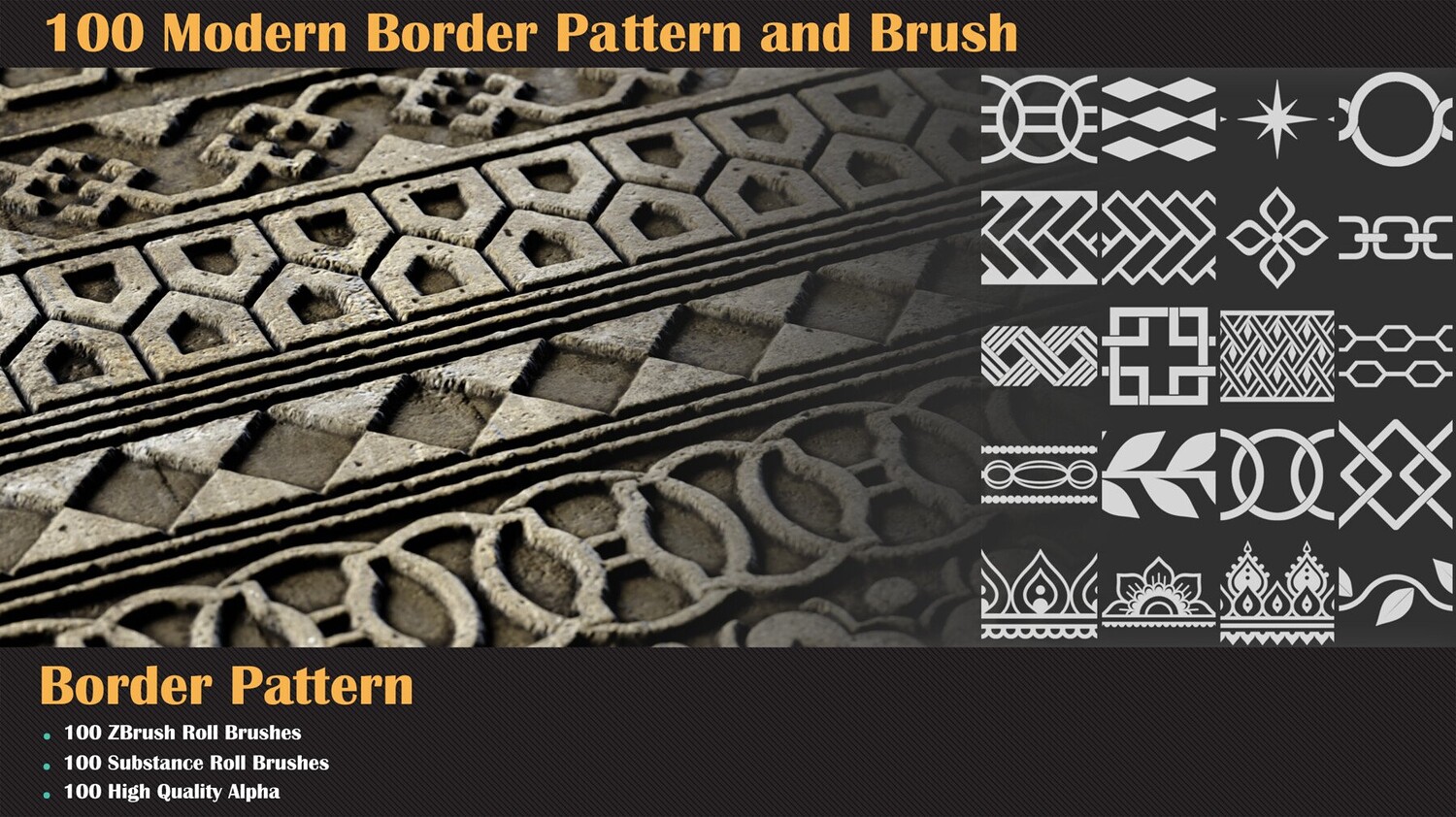 100 Modern Border Pattern - Substance and ZBrush Roll Brush