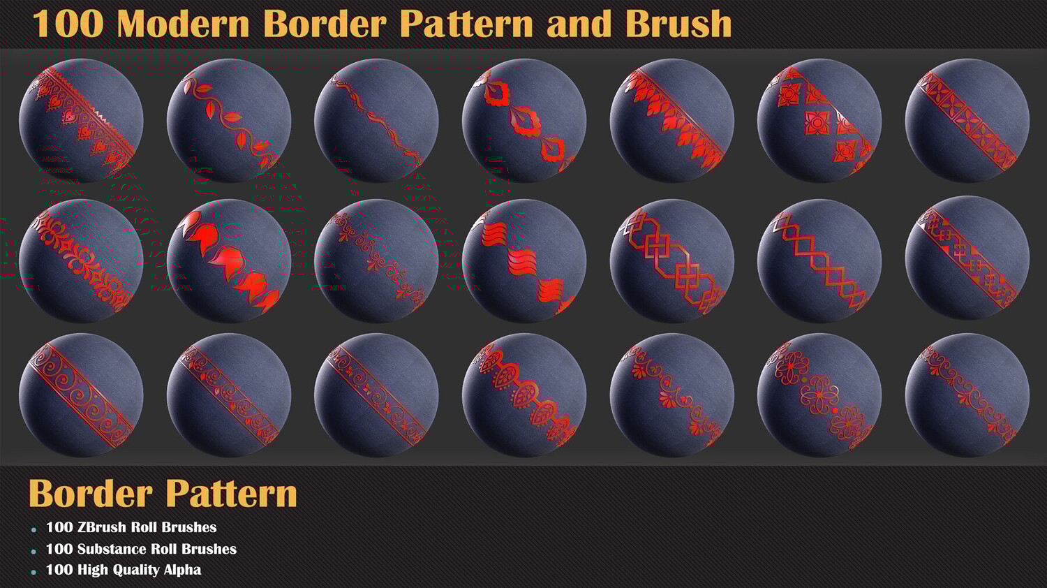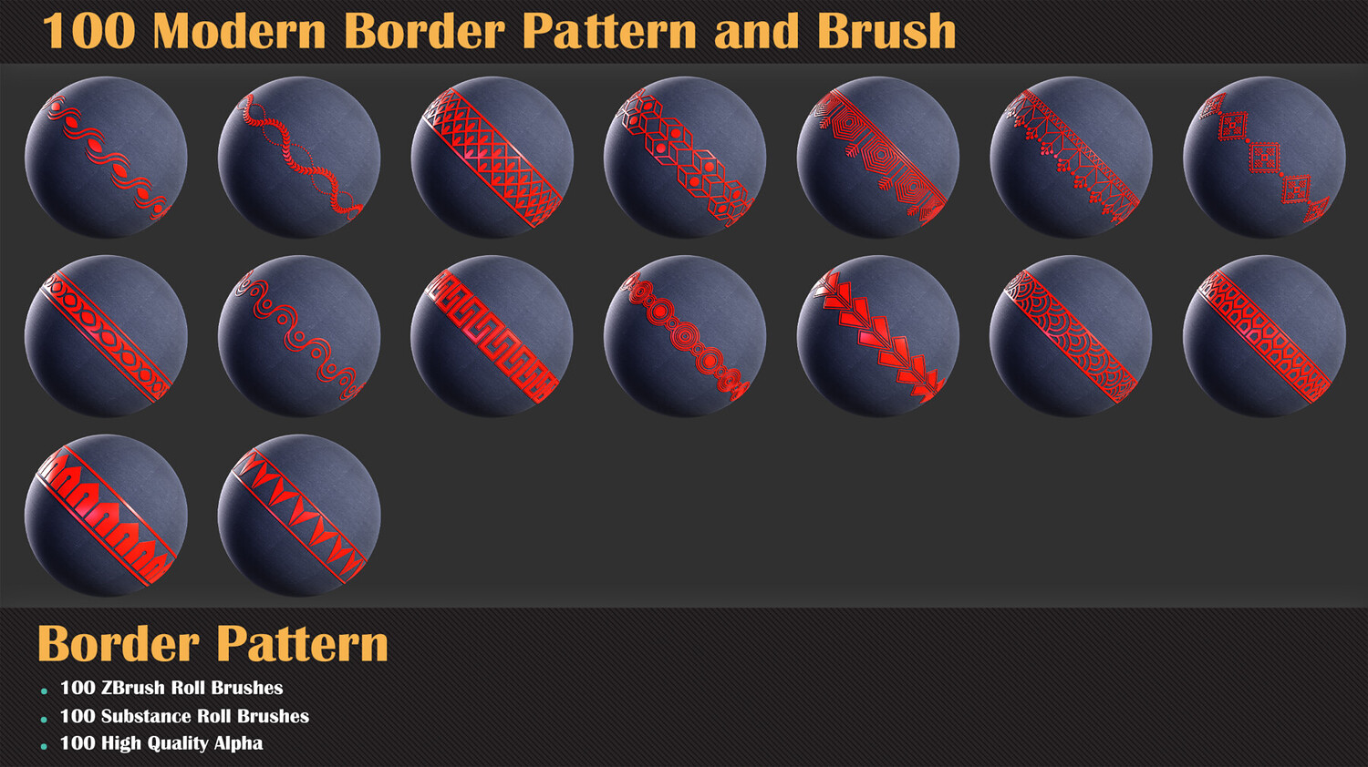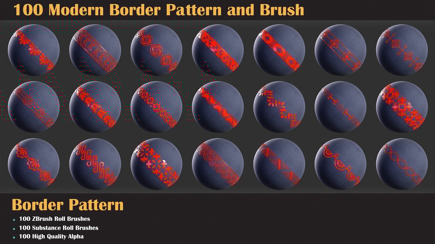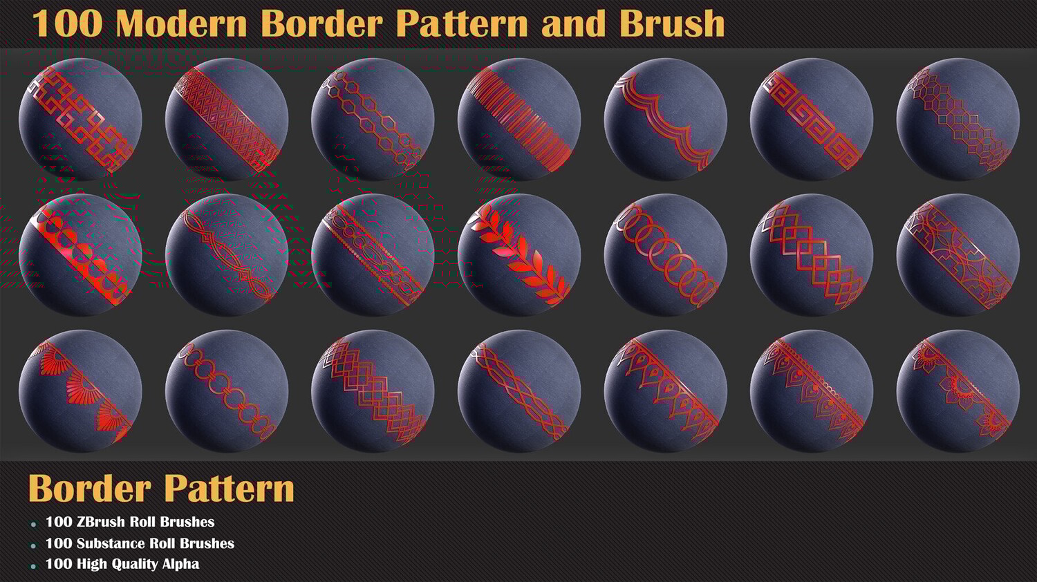 100 Modern Border Pattern - Substance and ZBrush Roll Brush
