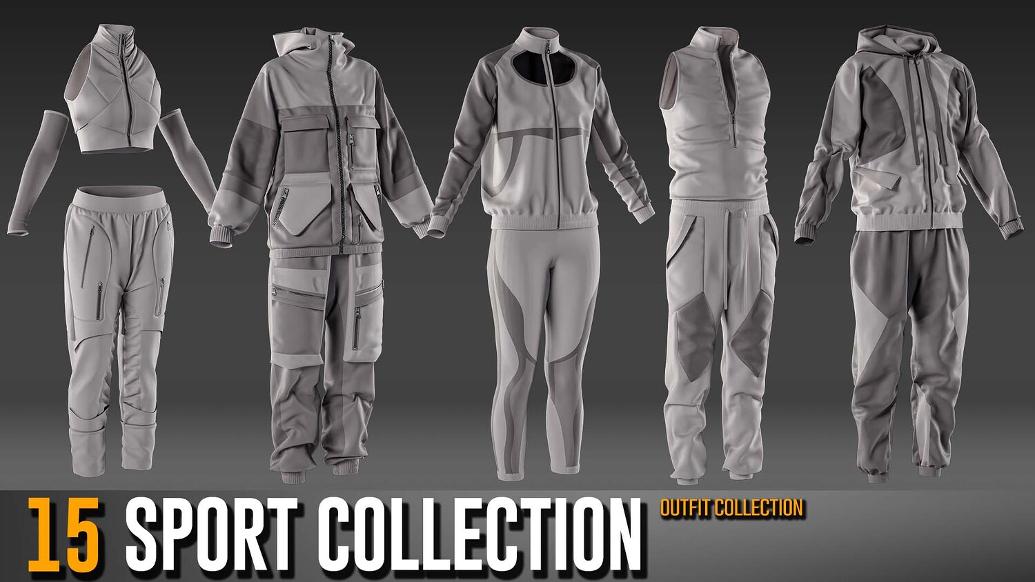 🎨Our product is tailored to enhance the style of Sport Collection enthusiasts with a collection of 15 unique base meshes for Sport Collection.🎨 Crafted to simplify the creation and prototyping process, our offering includes FBX files for easy use in prototyping or texturing to achieve your desired look. In addition, Marvelous Designer/CLO 3D projects are also included, giving you the flexibility to re-simulate or add extra details as needed. These assets are perfect for those involved in fashion design and offer neatly organized garment arrangements alongside 15 previews for each Sport Collection Style.