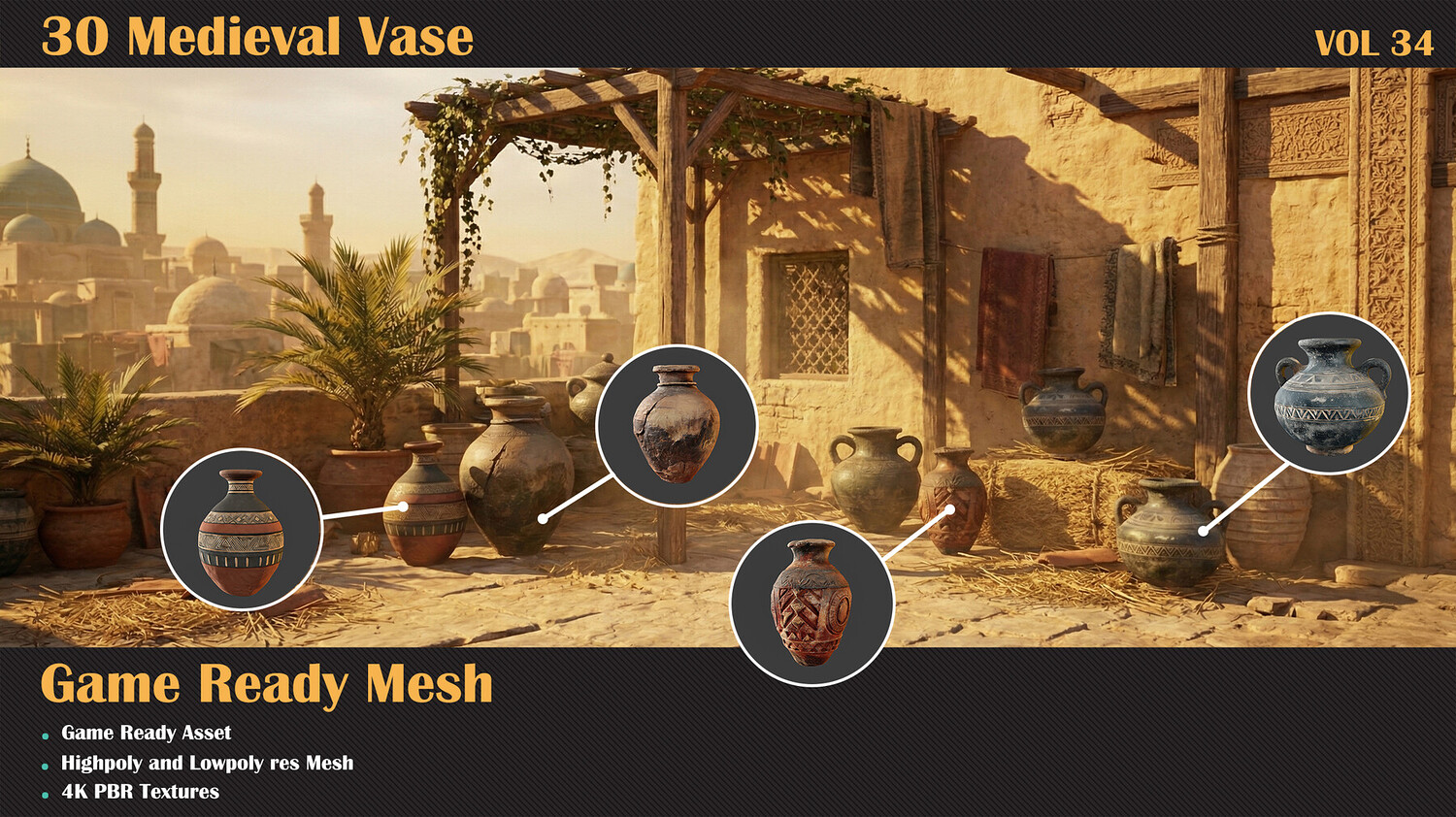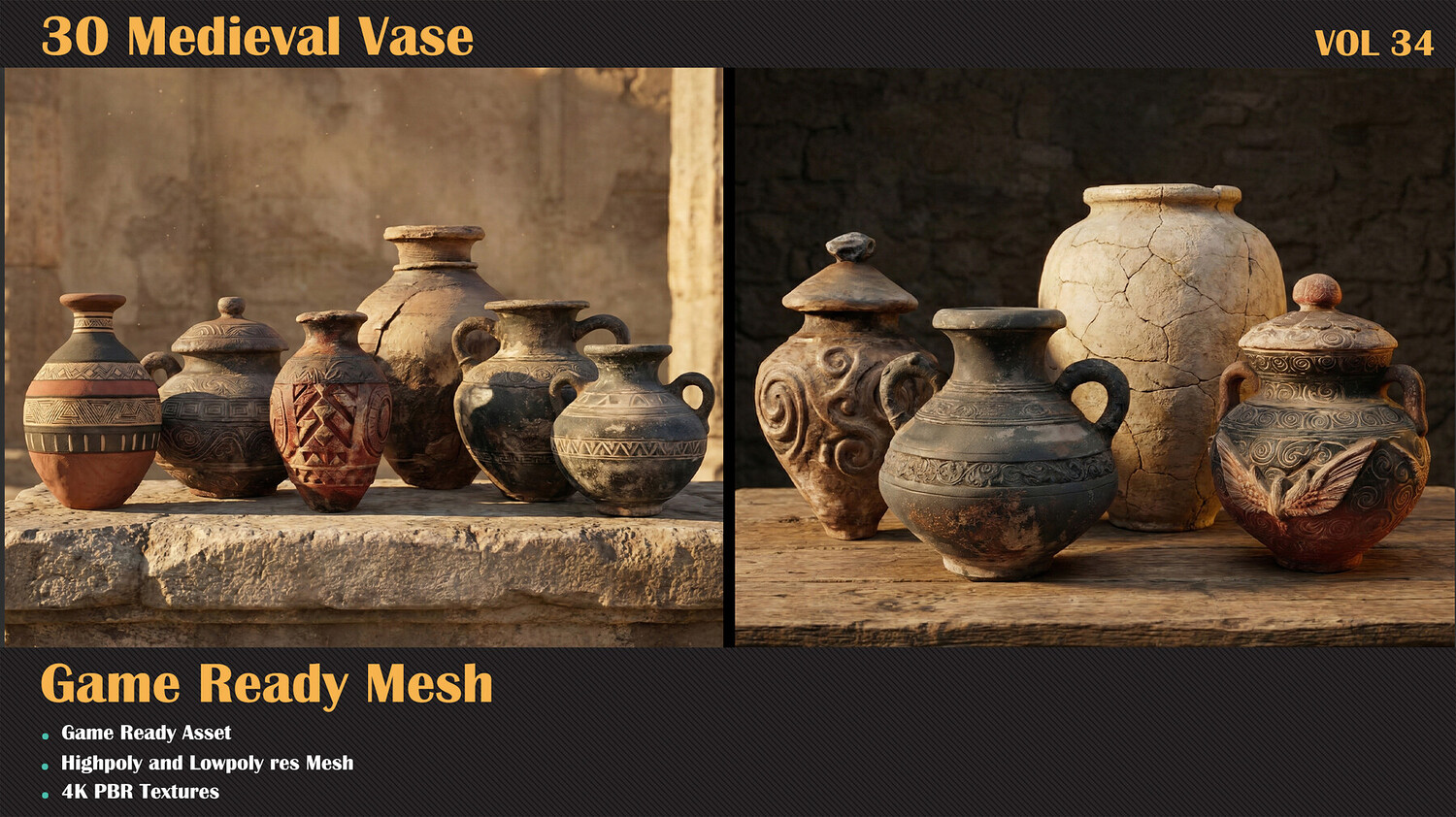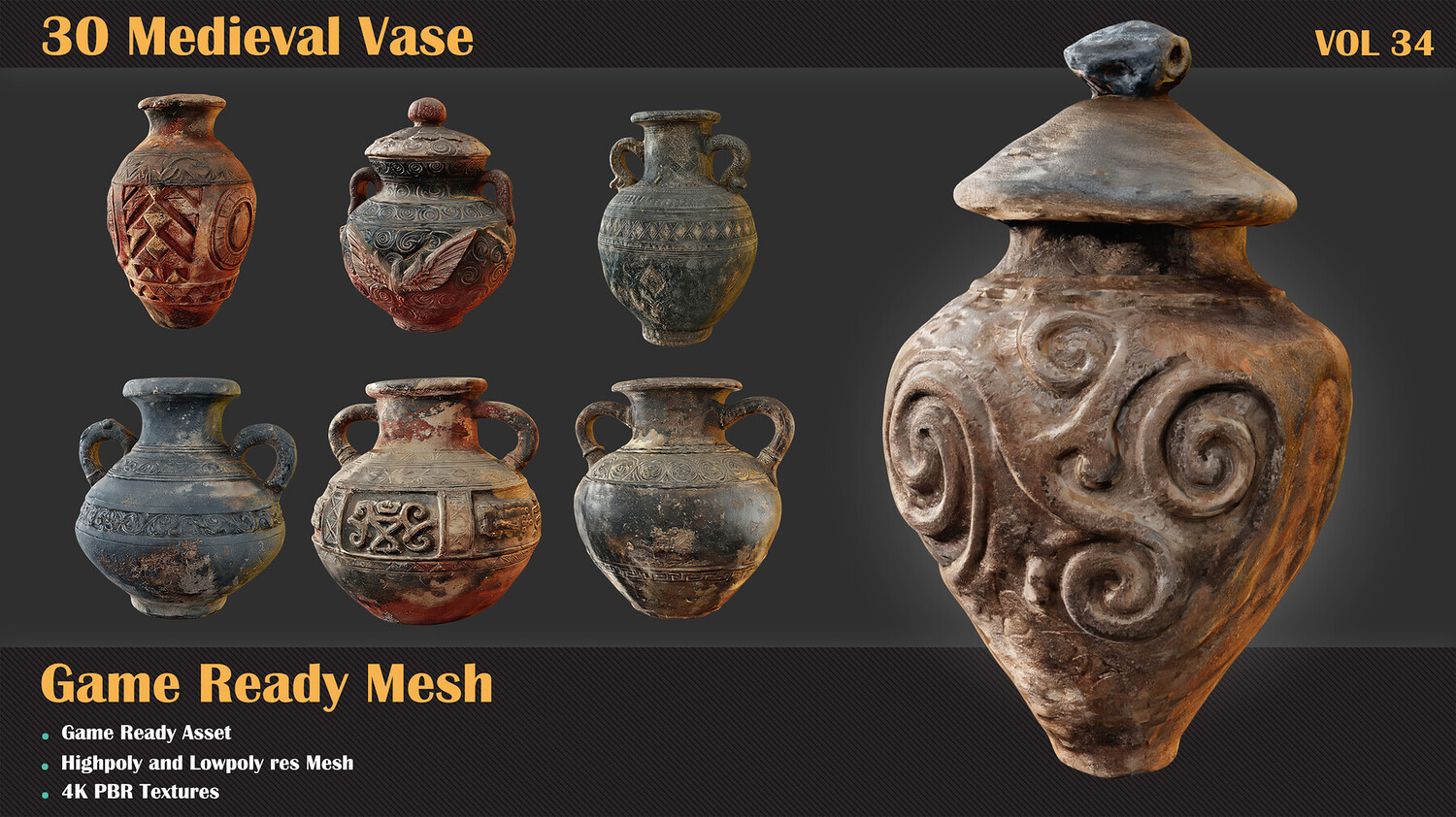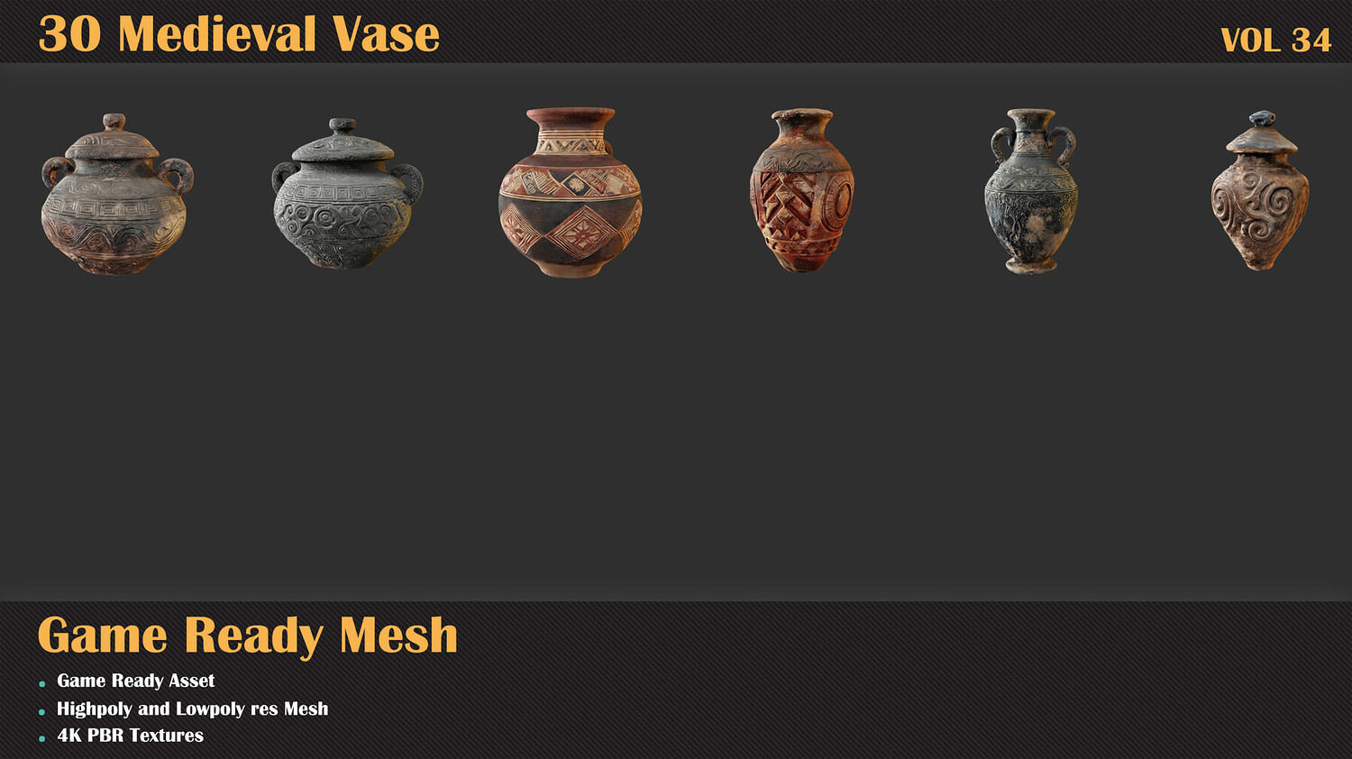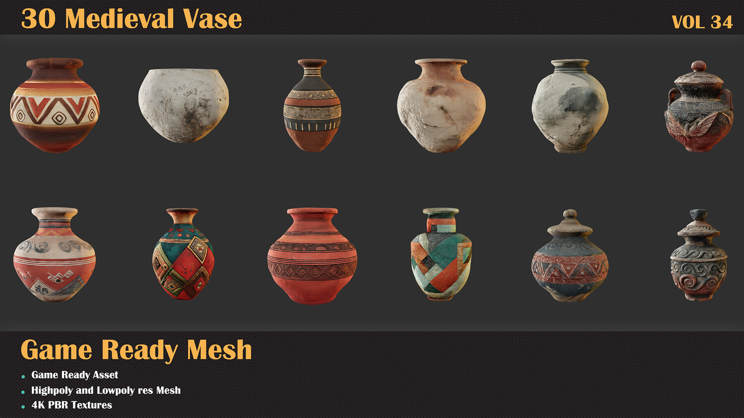 β 30 unique Vase πͺ€ β FBX formats drop them right into your workflow πΎ β Highpoly and Lowpoly includedπ₯ β 4K Textures included β UVs clean and unwrapped (Channel 1) π β Optimized topology: polycount ranges from 5k (lowpoly and highpoly) π§± β Each model includes a preview render so you know exactly what you're getting πΌ β Easily customizable to match your style or project needs π¨ Just bring your textures everything else is ready to go. πΌ Let these cages set the mood in your medieval scene! πΈππ»
