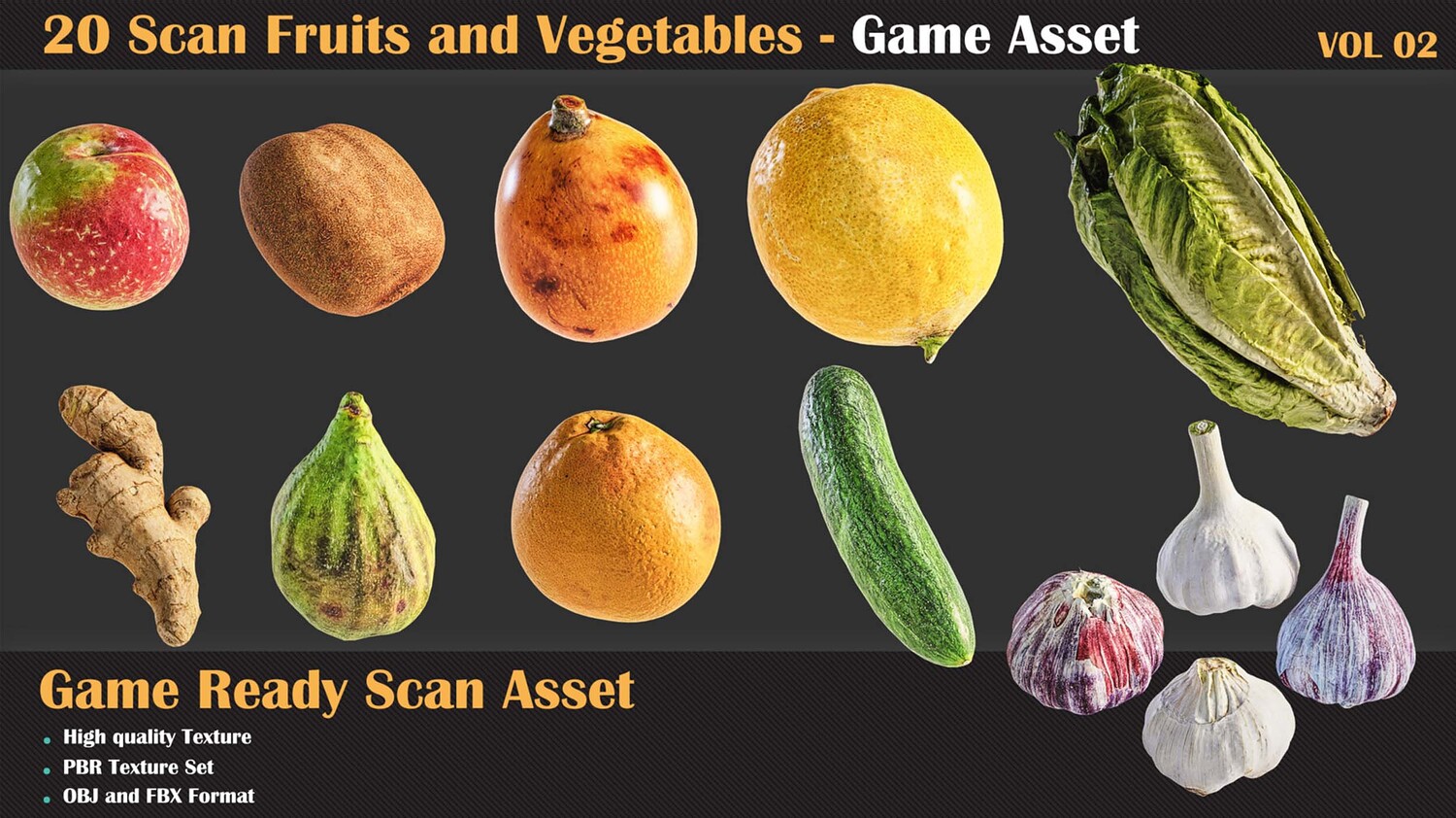 Bring your projects to life with our meticulously crafted collection of 20 fruit and vegetable models, designed for unmatched realism. This diverse range includes models with polygon counts between 1,000 to 30,000 triangles, each showcasing a unique preview and stunning 4K textures.