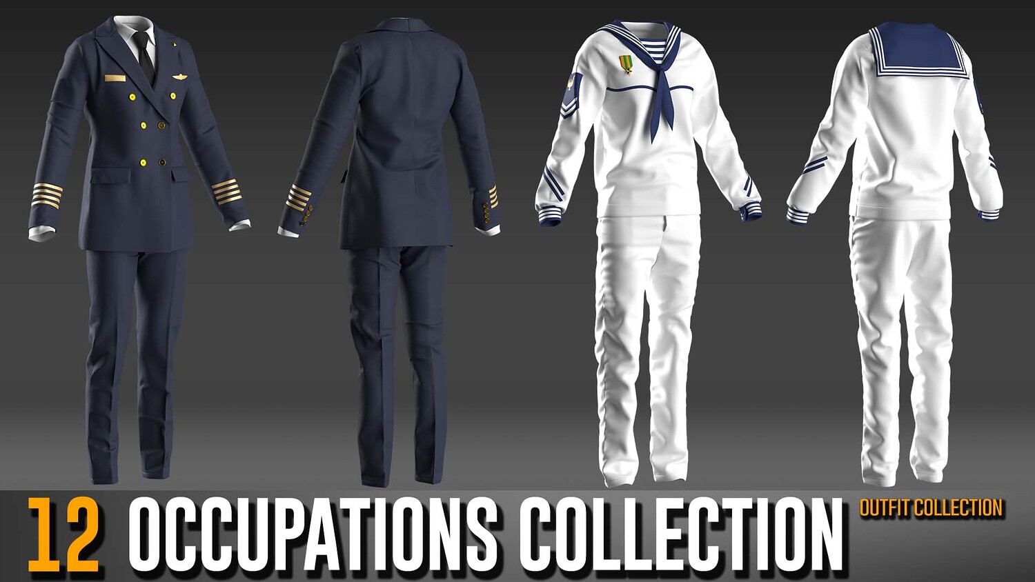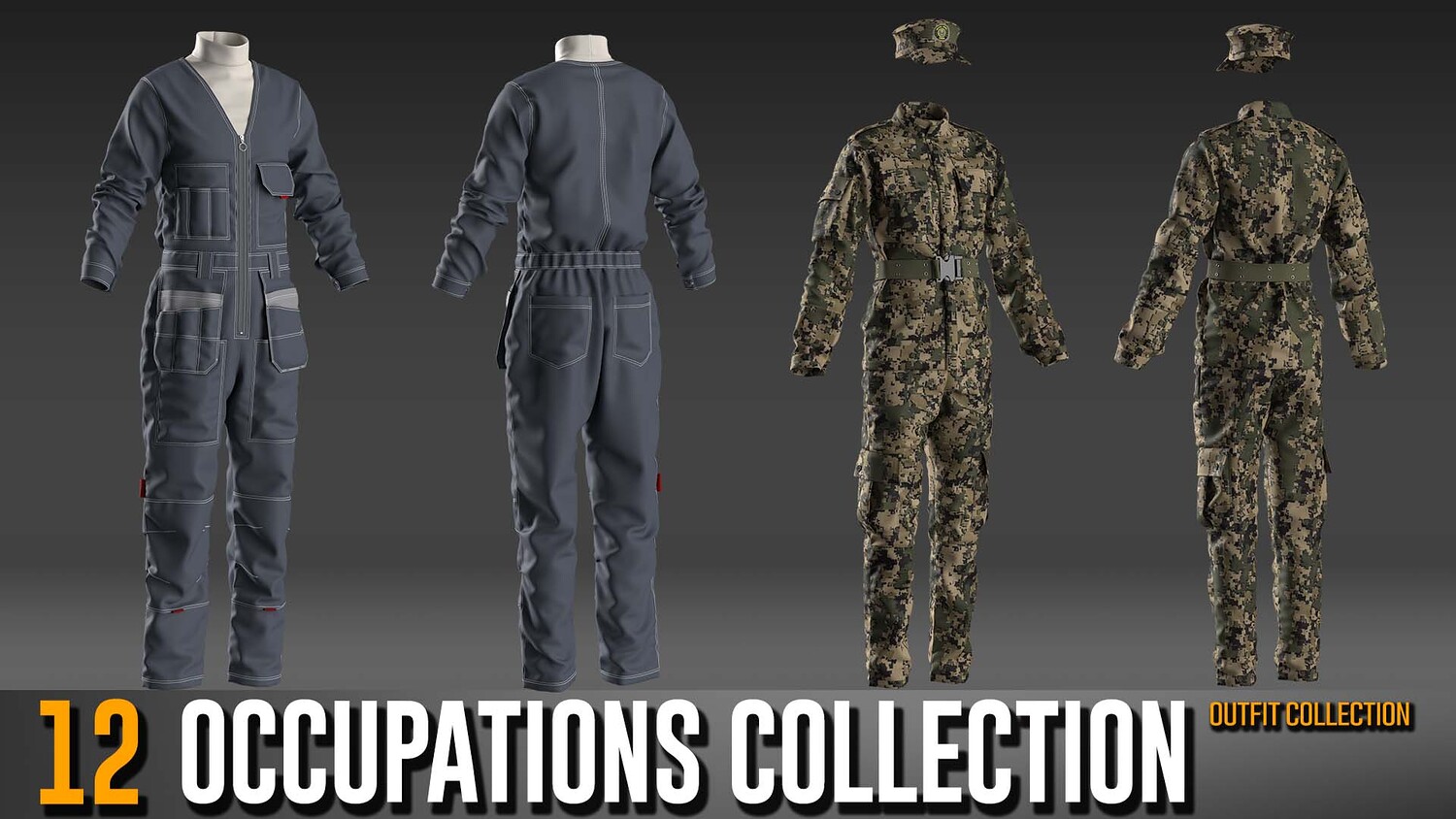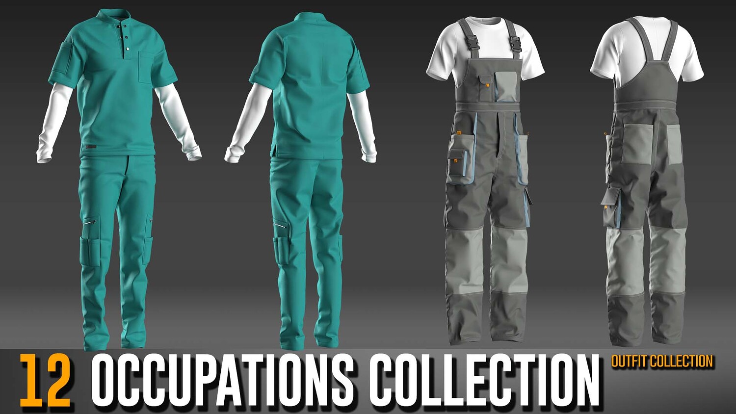 🎨Our product is tailored to enhance the style of Occupations Collection enthusiasts with a collection of 12 unique base meshes for Occupations Collection.🎨 Crafted to simplify the creation and prototyping process, our offering includes FBX files for easy use in prototyping or texturing to achieve your desired look. In addition, Marvelous Designer/CLO 3D projects are also included, giving you the flexibility to re-simulate or add extra details as needed. These assets are perfect for those involved in fashion design and offer neatly organized garment arrangements alongside 12 previews for each Occupations Collection Style.