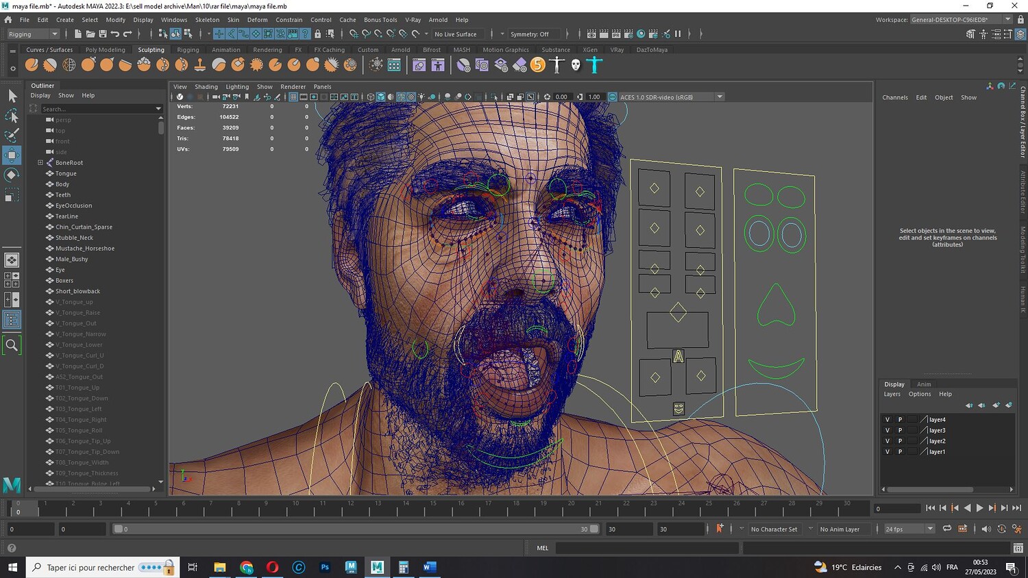 *facial blend shape work perfect in unreal engine (Tongue ,lips ,brow ,blink , nose Flank,cheek , mouth ...) more than 125 morph controller