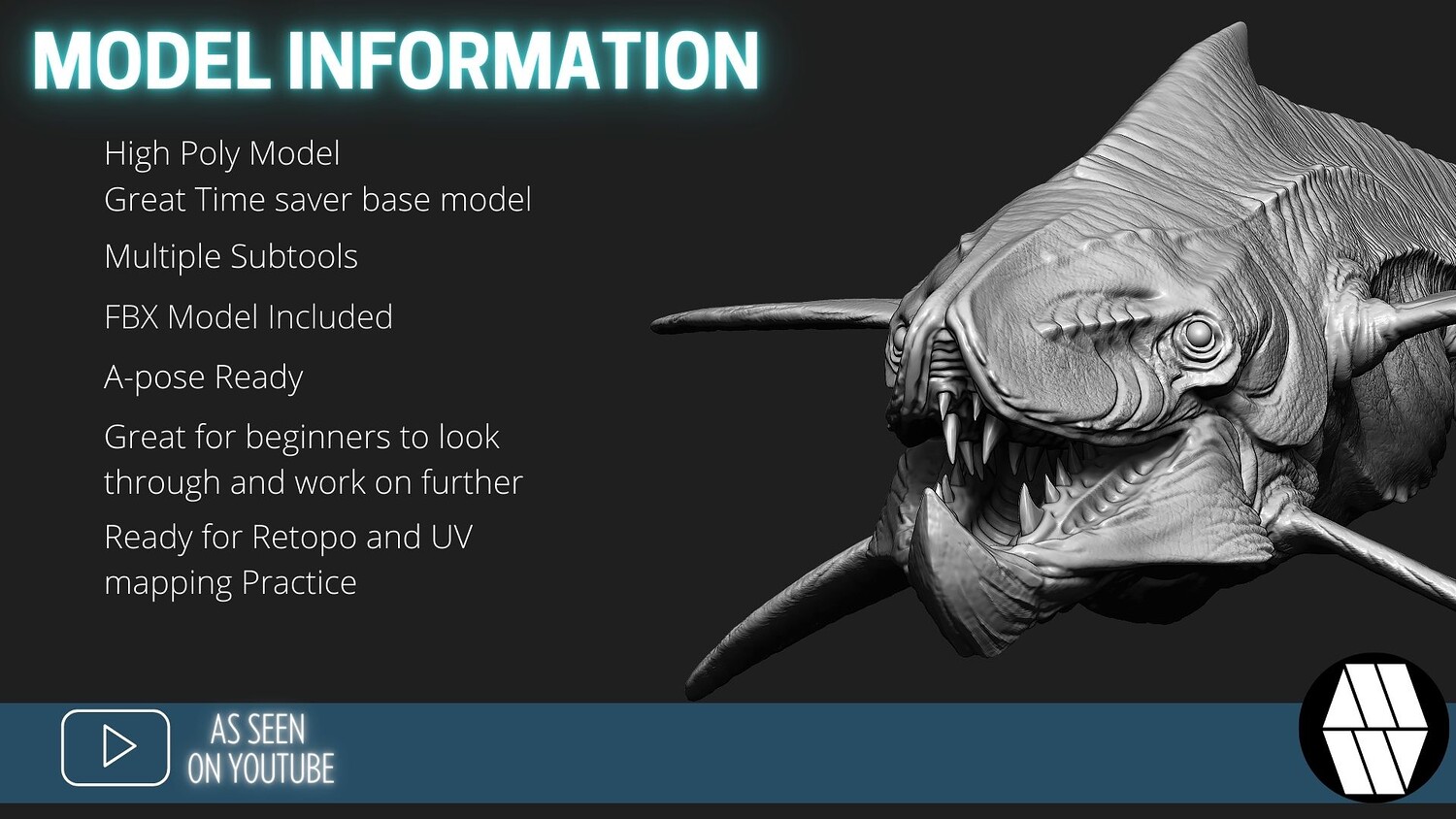 An excellent model to use for Practicing and referring back to. Take this base model further with detailing inside of ZBrush or use the FBX model in Blender or other 3D softwares.