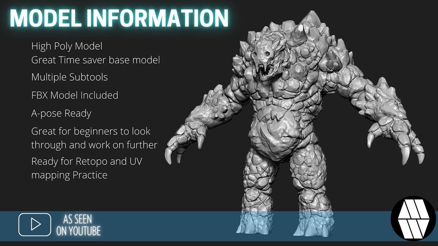 Included: - One ZBrush ZTL 2021 - Rock Golem Model - One ZBrush ZTL 2022 - Rock Golem Model - One FBX Model - Tutorial V2.0 Update Video: How to use the Models - 5 mins
