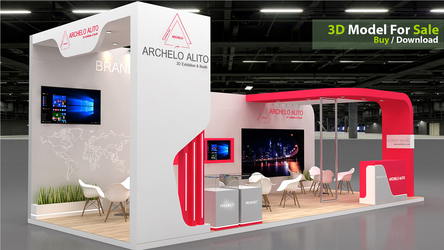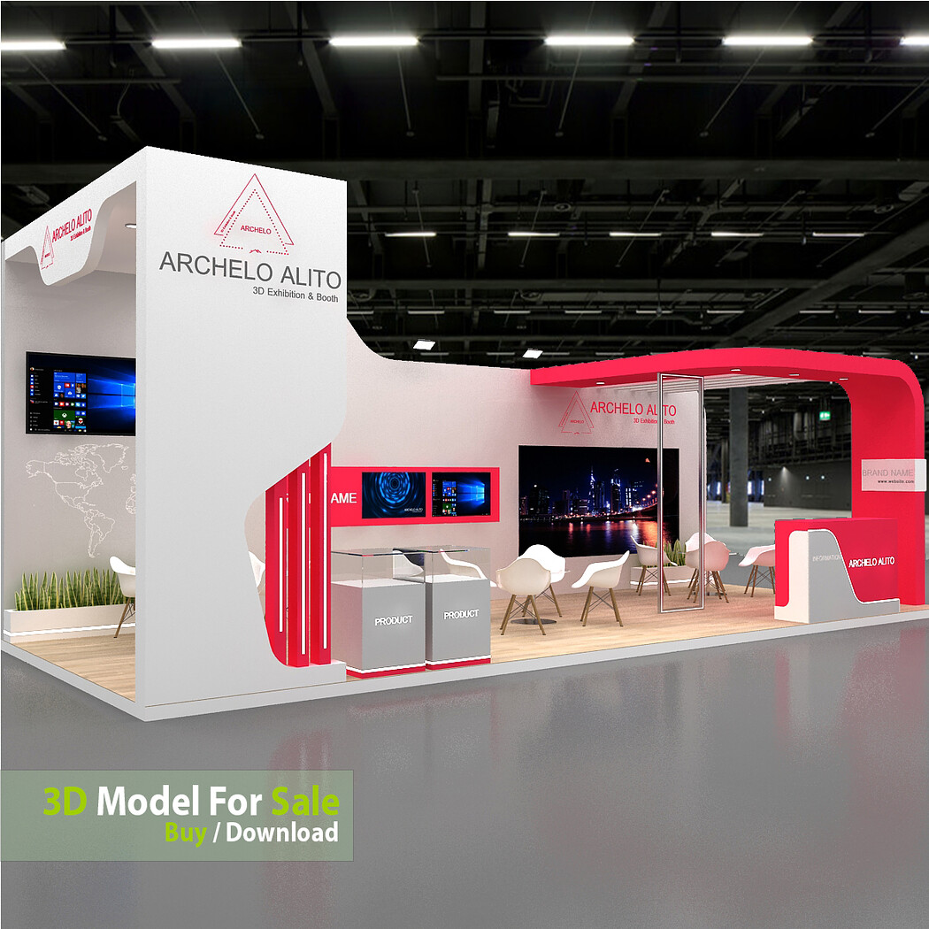 Why choose this 3D exhibition booth model? • High-quality polygon modeling with correct topology • Fully customizable design for different events and spaces
