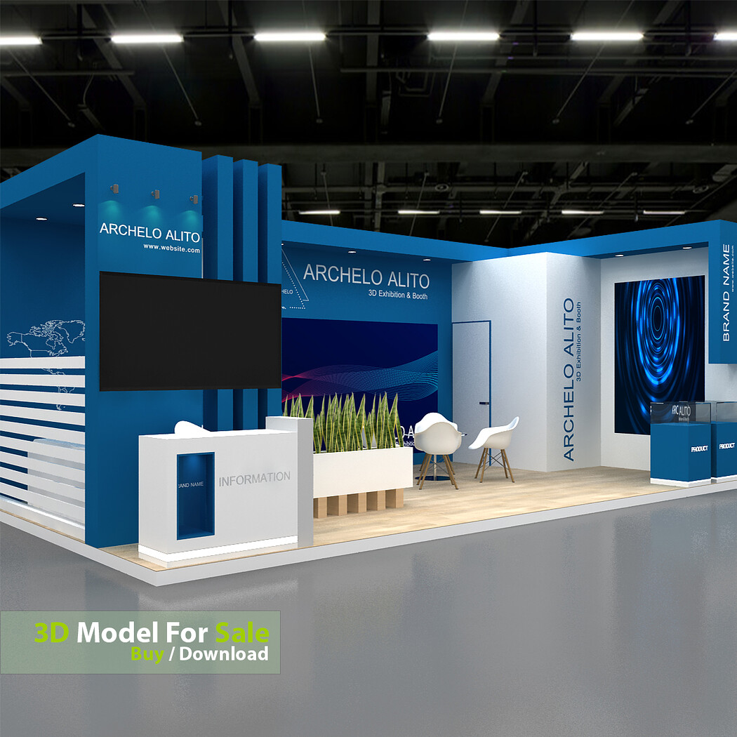 Why choose this 3D exhibition booth model? • High-quality polygon modeling with correct topology • Fully customizable design for different events and spaces