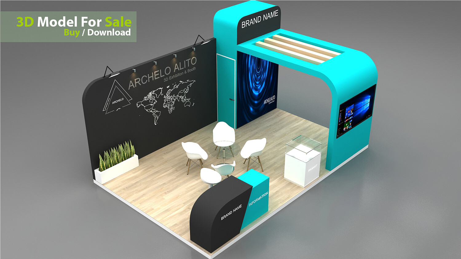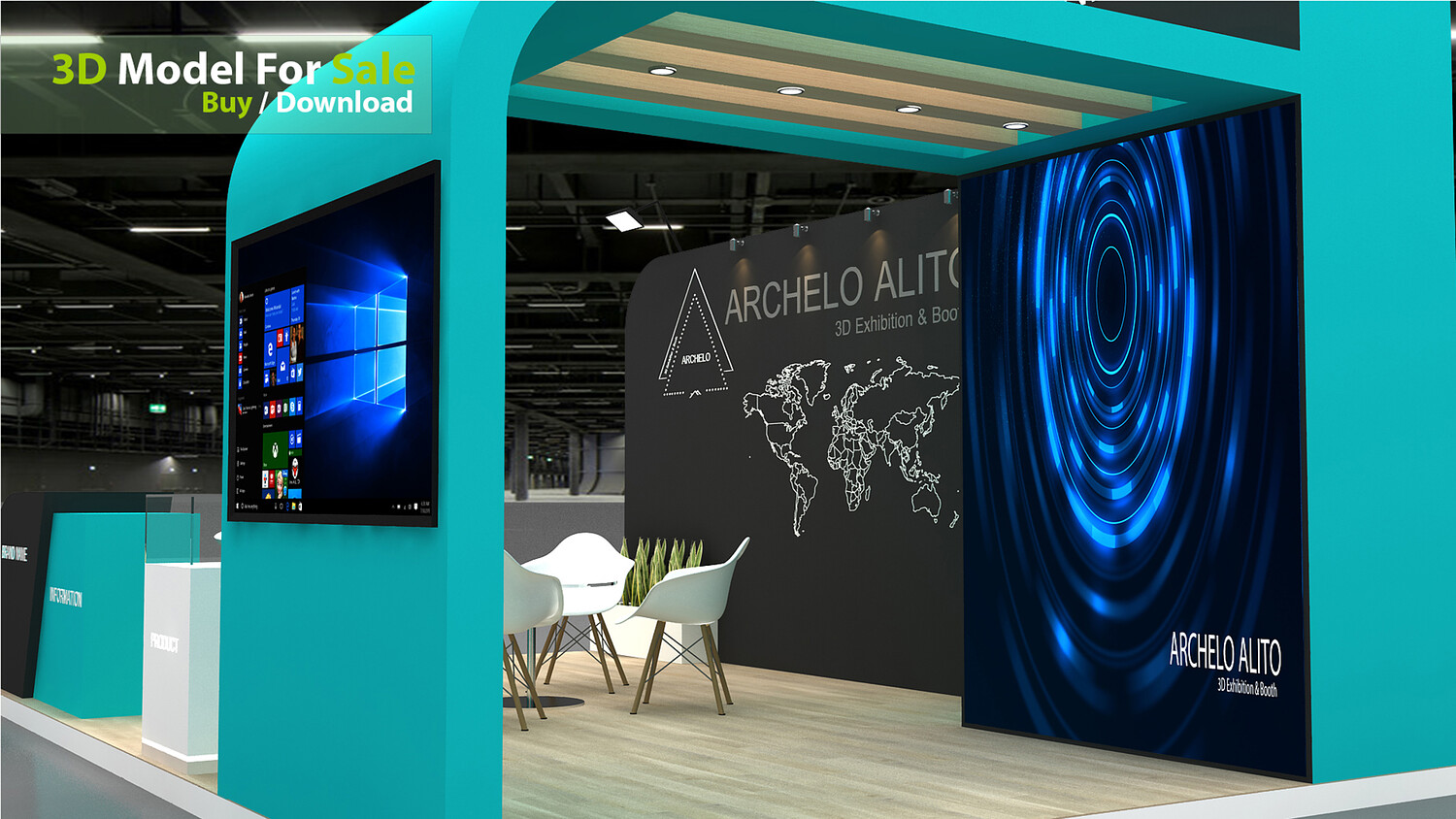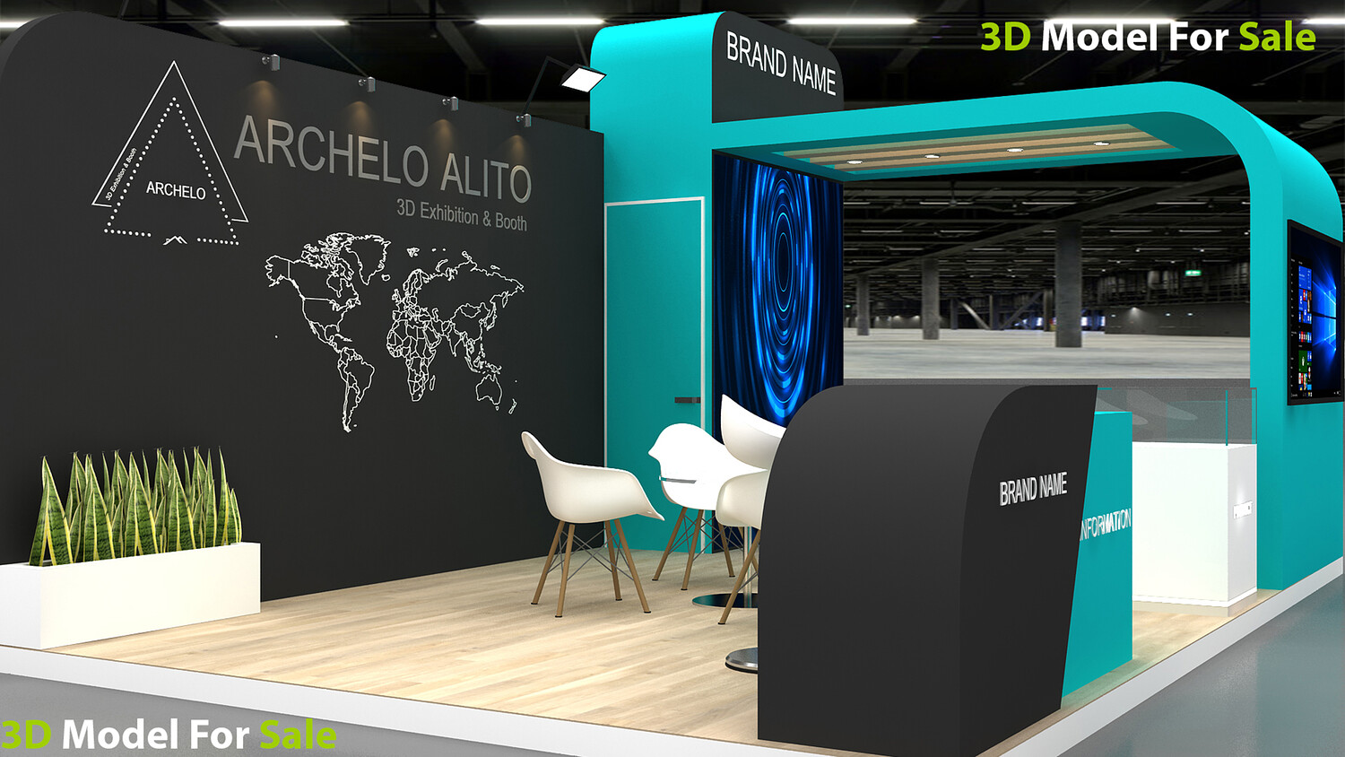 Why choose this 3D exhibition booth model? • High-quality polygon modeling with correct topology • Fully customizable design for different events and spaces