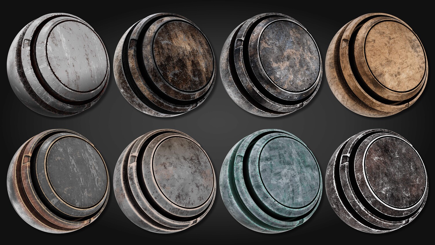 💡Features: High-quality preview 10 smart metal materials (SPSM) Each layer has a proper name Lightweight and not heavy 100% created with Substance Painter All content validated with PBR standards Compatible with Substance 3D Painter version 11.00 and higher 💡Applications: Ideal for designing industrial environments Suitable for weathered objects Perfect for post-industrial scenes in game development Great for animation, visual effects, and industrial design Ideal for creating walls, machinery, statues, and old equipment 📁How to Use: