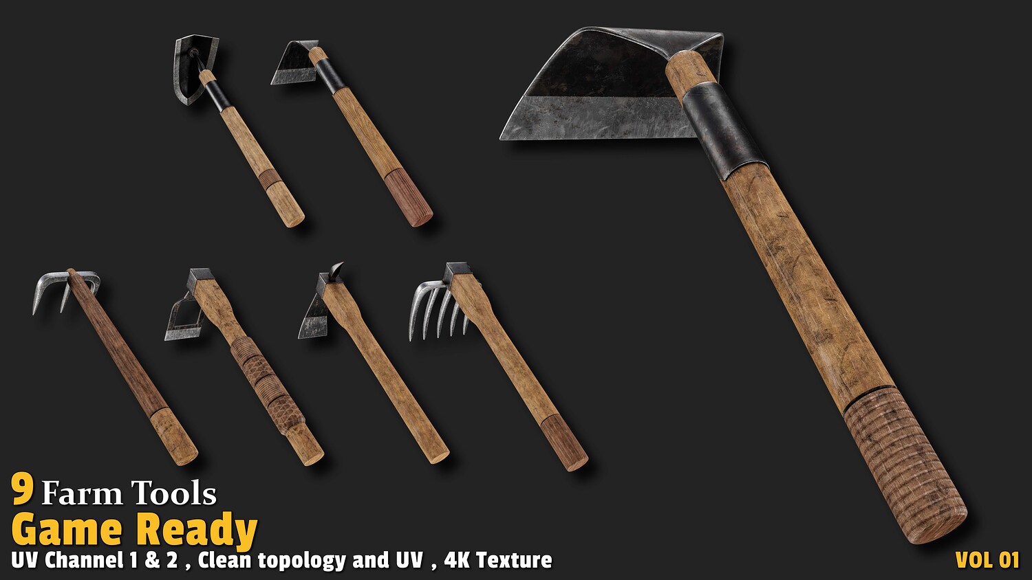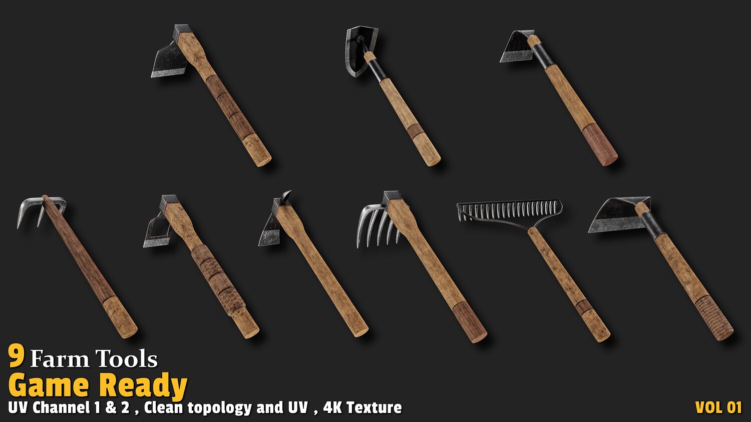 9 Farm Tools Game Ready-VOL01