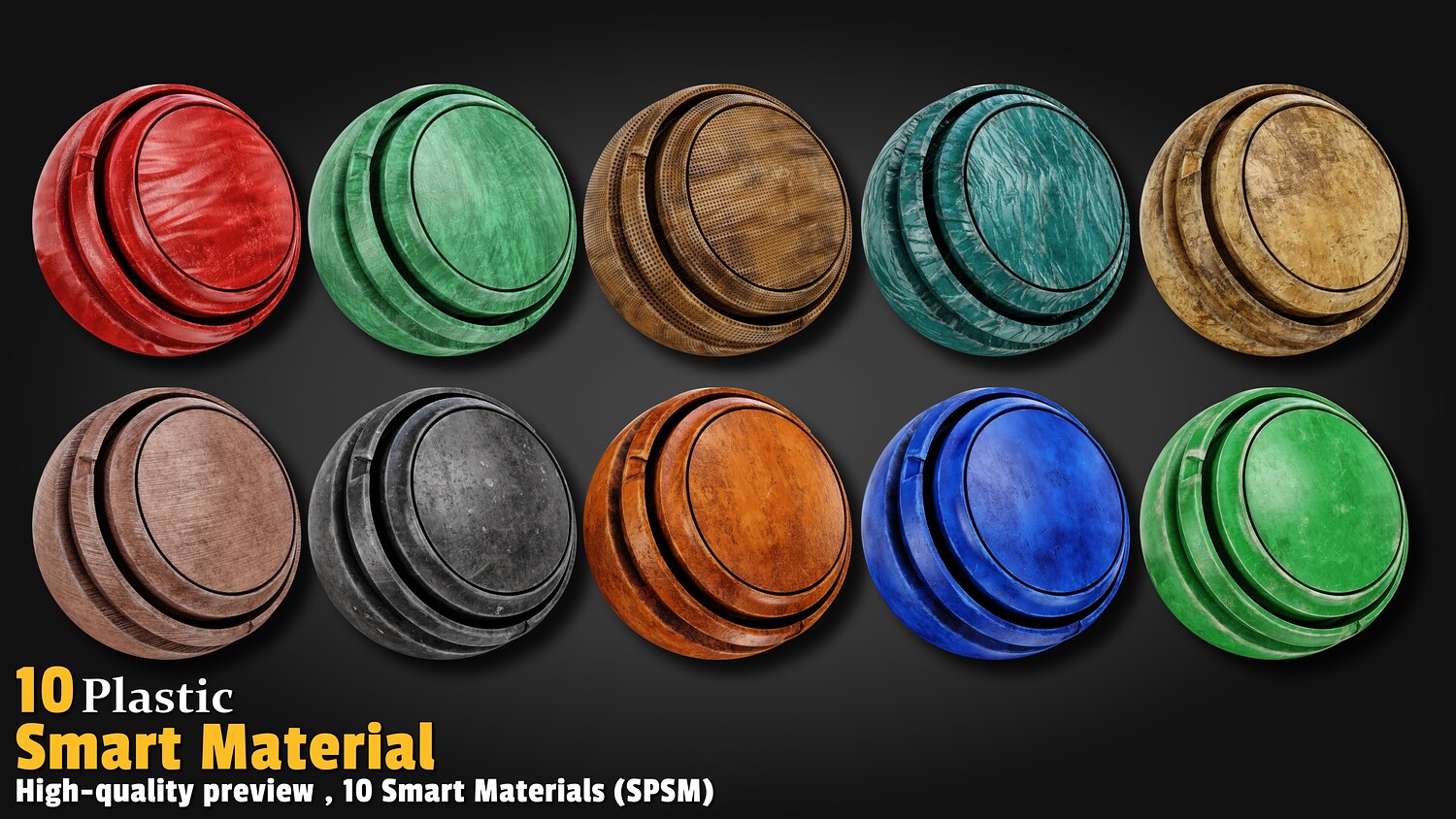 This collection includes 10 smart material (Smart Material) plastic textures, carefully designed and crafted in Substance Painter version 11. Each material is provided with an SPSM extension and comes with a separate high-quality preview in its respective folder. A tutorial video is also included to guide you step-by-step on importing and using these materials.