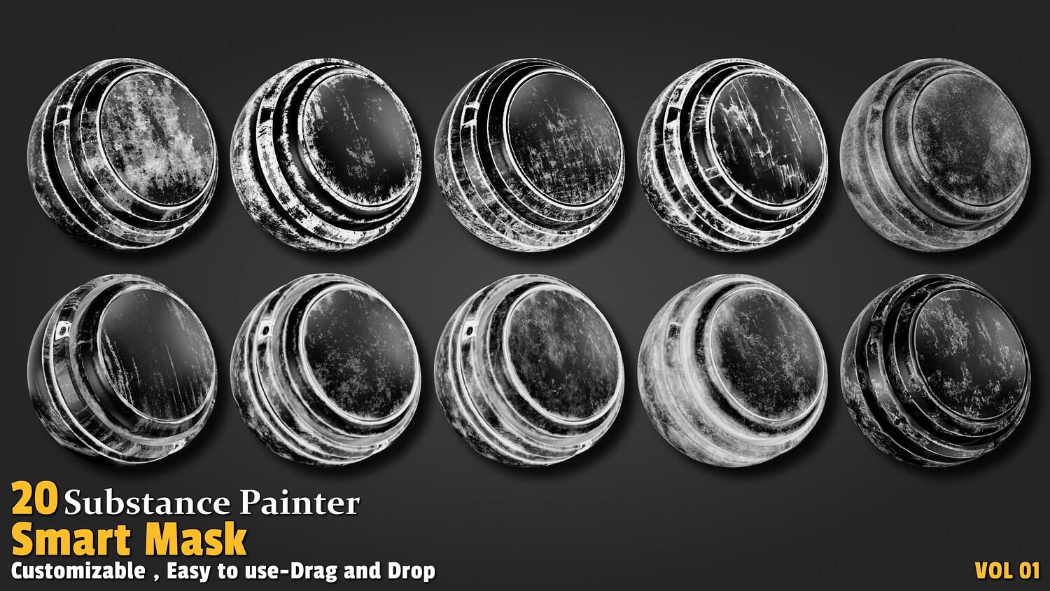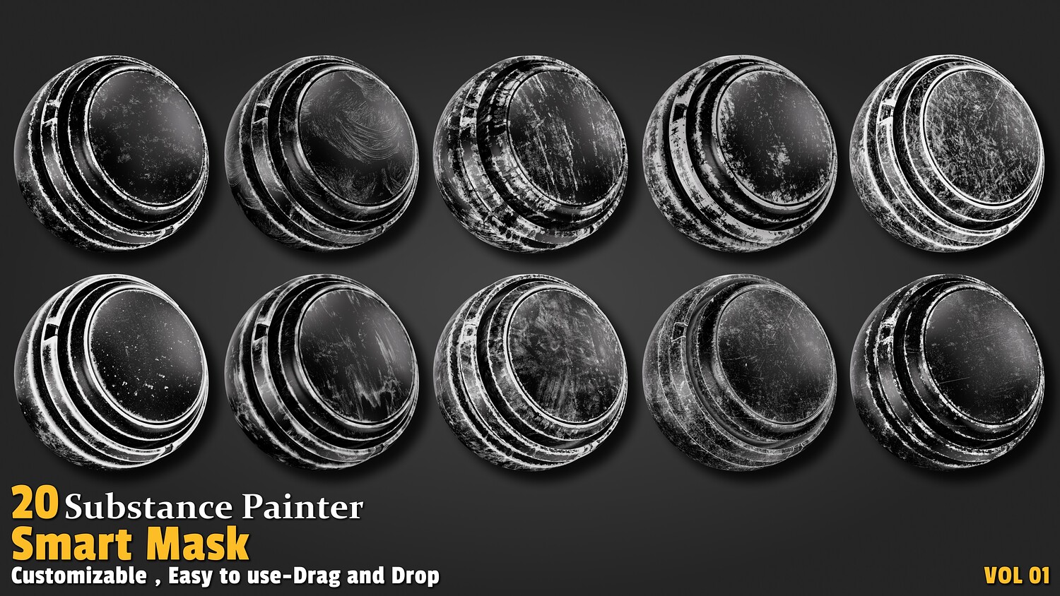 Simply drag & drop the smart masks into your Substance Painter shelf and apply them instantly to your layers.