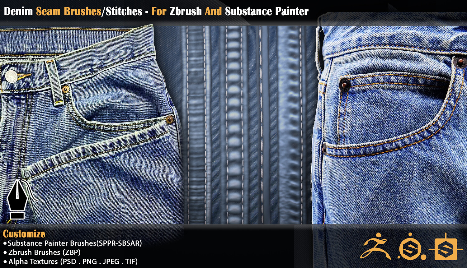 Denim Seam Brushes/Stitches - For Zbrush And Substance Painter (VOL-04)