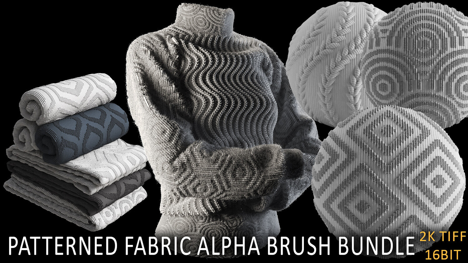 Patterned fabric alpha brush bundle (2k tiff 16 bit)