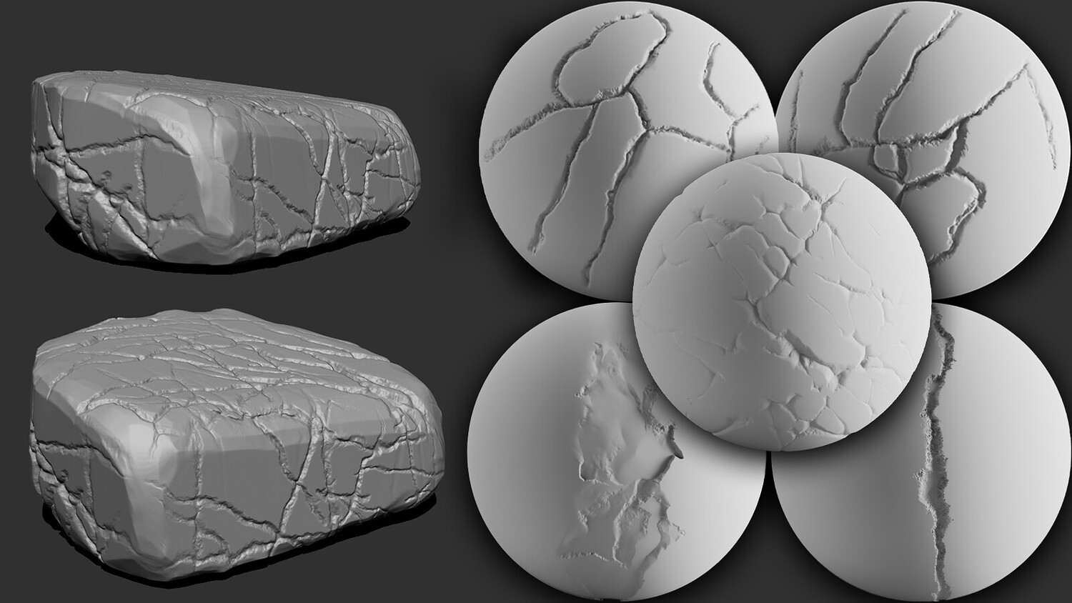 stone crack big bundle alpha kit include 230 2k high quality grayscale alpha heightmaps and wide variety of crack types and each type include up to 30 alpha variations